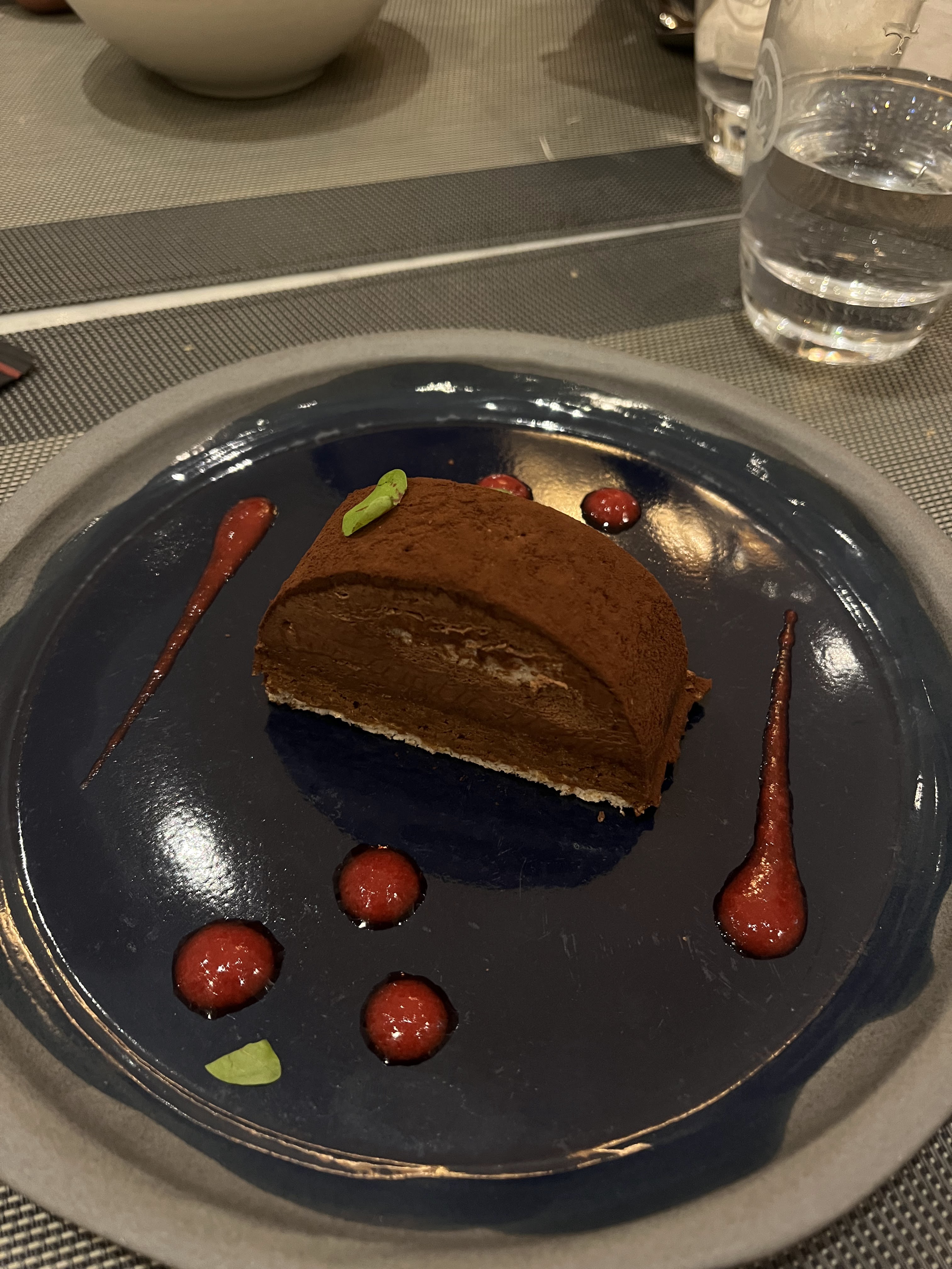 Sur une table de 6 nous avons été 3 à prendre le pavé de saumon/épinards et 3 à être malade toute la nuit puis là journée… bref expérience pas top même si sur le moment tout semblait plutôt bien..