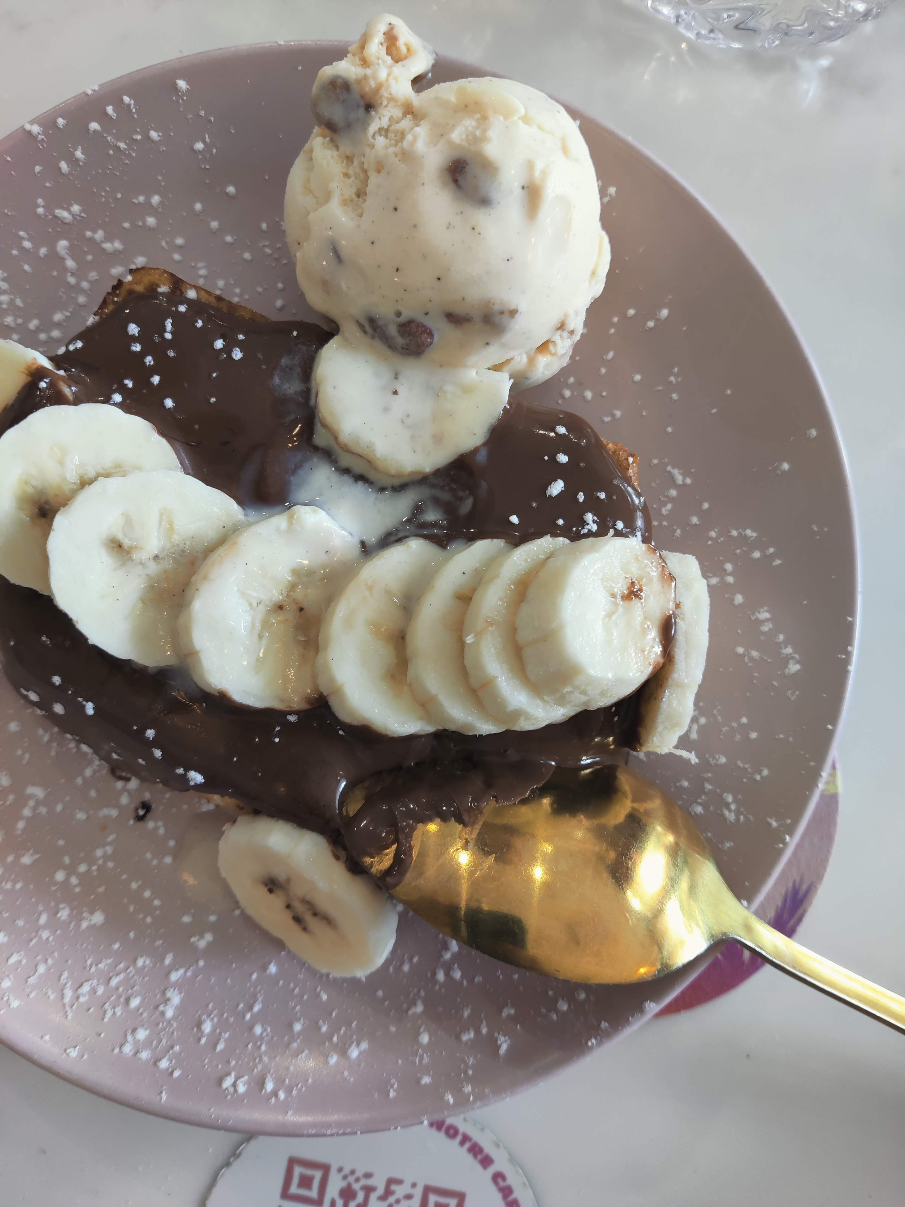 Endroit vraiment très joli, avec une équipe adorable Bon rapport qualité/prix J'aurai bien apprécié un menu brunch🥰, ça aurait été top... Il existe tout de même un menu petit déjeuner à 6,5€ Le chocolat chaud + pancakes chocolat banane = 11,5€