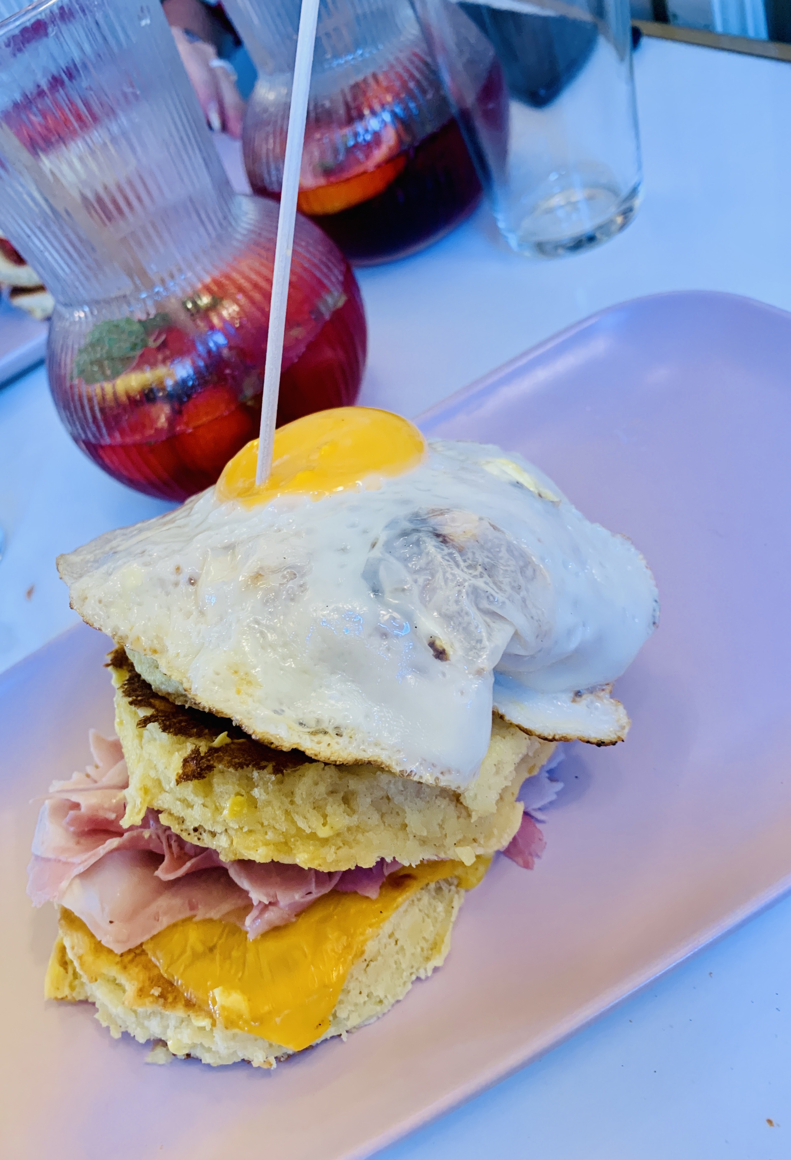 Tout d'abord, le positif : les gens sont relativement sympathiques et l'endroit à l'intérieur a l'air sympa (même si nous nous sommes assis dehors car c'était plein). Deuxièmement, le point négatif : notre commande d’œufs brouillés, de crêpes et d’œufs Bénédicte, ainsi qu’un plateau composé est arrivée plus rapidement que la commande chez McDonald’s. Cela vous dit quelque chose. Le plus important : la nourriture était plutôt mauvaise. La sauce hollandaise pour le Benedict était faite de margarine bon marché, la charcuterie sur le plateau était sèche et les œufs brouillés étaient recouverts d'un fromage épouvantable. Je le recommanderais si vous souhaitez prendre une photo avec votre nourriture, je ne le recommanderais certainement pas si vous voulez réellement manger votre nourriture.