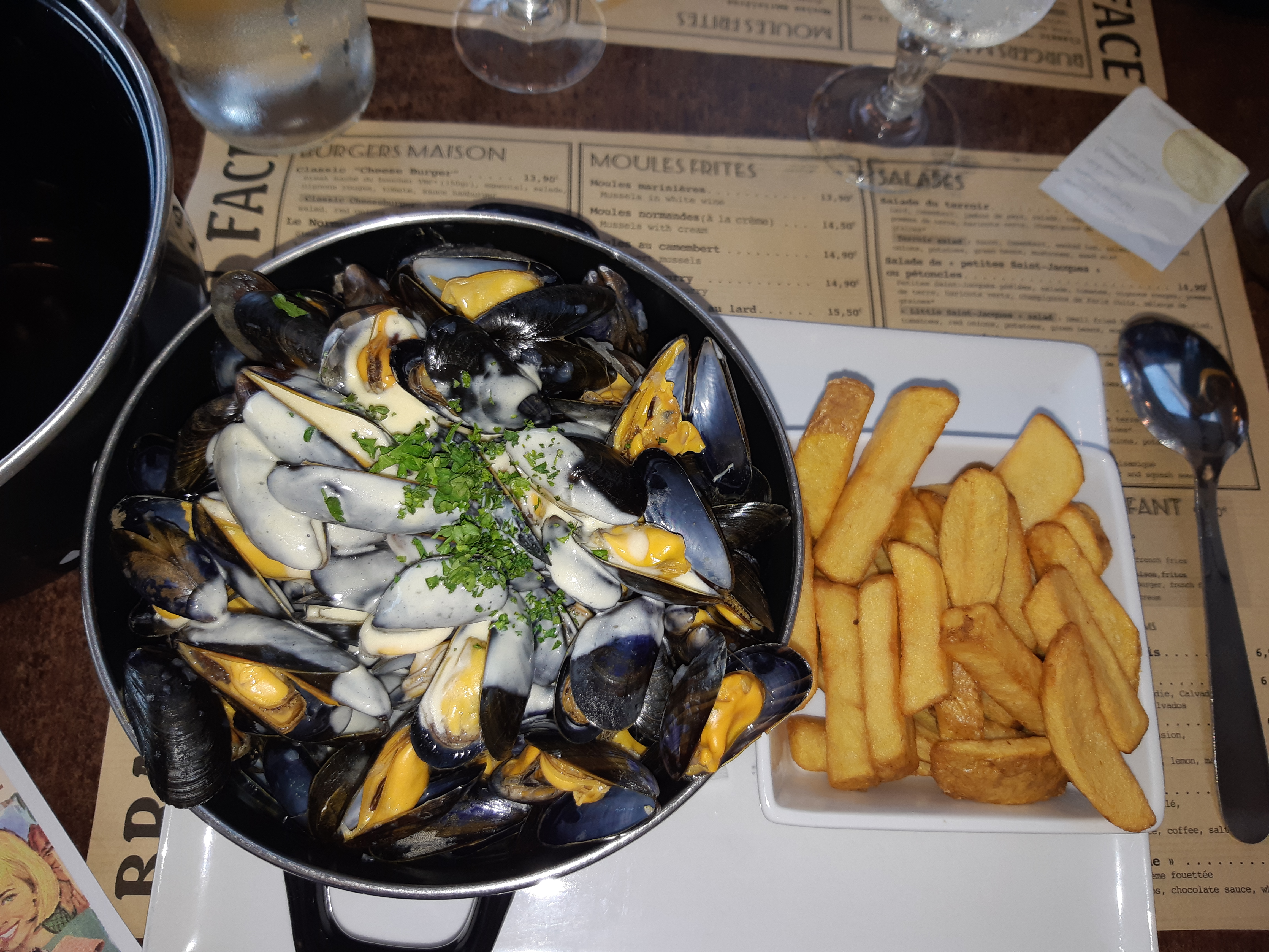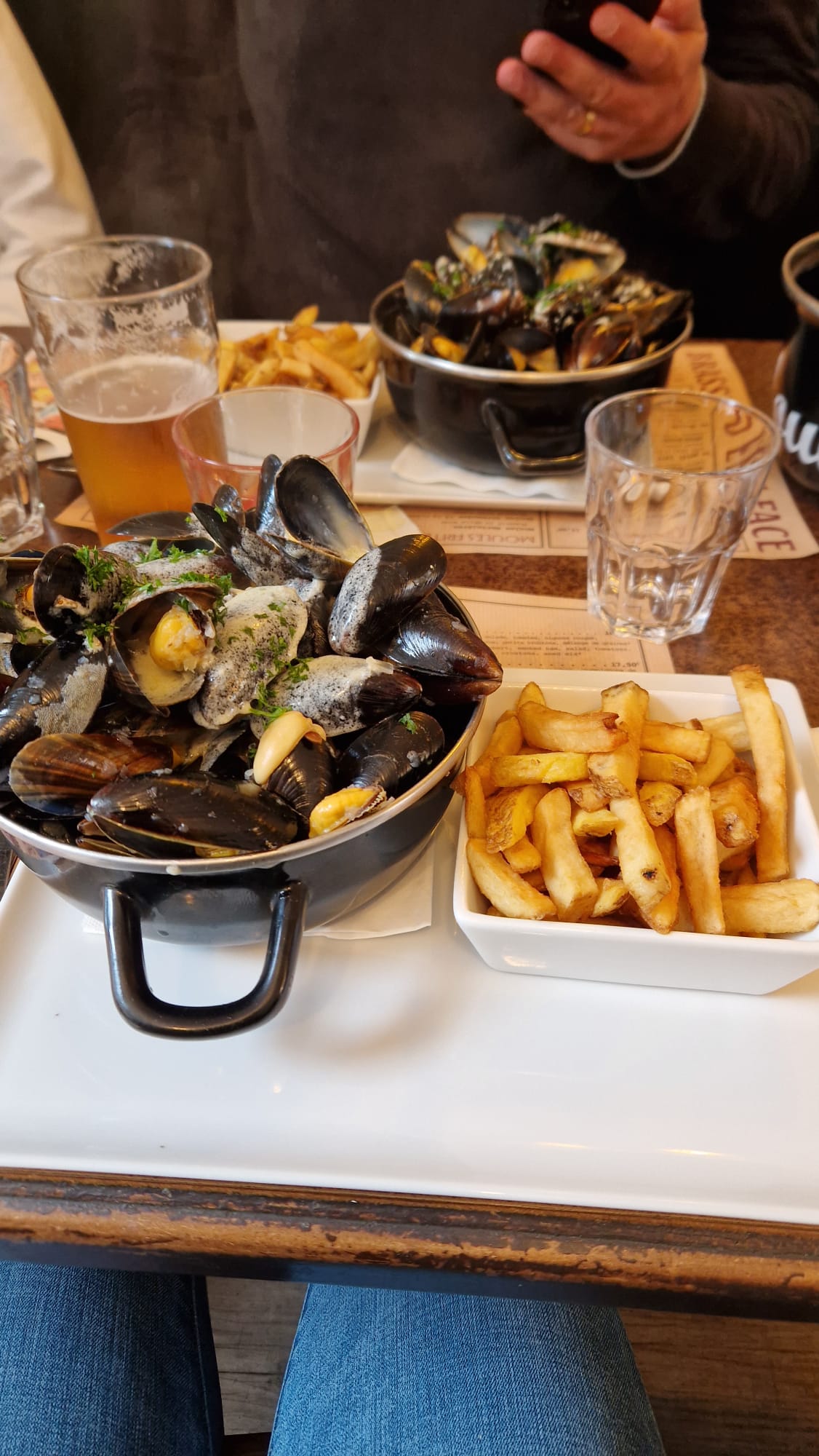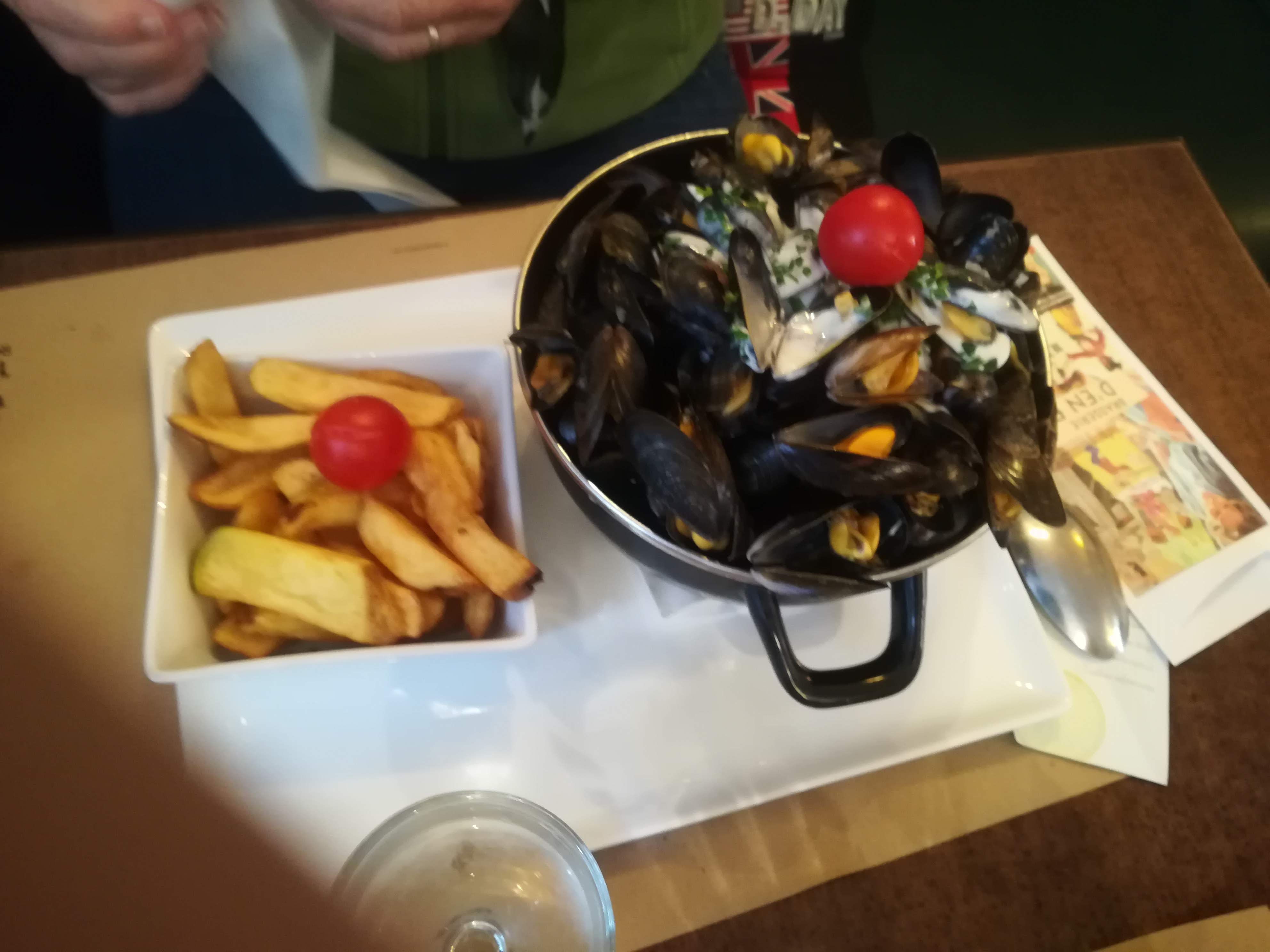 Très mauvaise expérience, les moules sont bonnes, une vingtaines pas ouvertes, cependant elles sont servis dans le couvercle et la cocotte sert de poubelle, grosse arnaque !! Allez en face vous aurez le double de moules, enfin une vrai part. De plus le serveur nous tend l'assiette au lieu de nous la servir devant nous en la déposant.