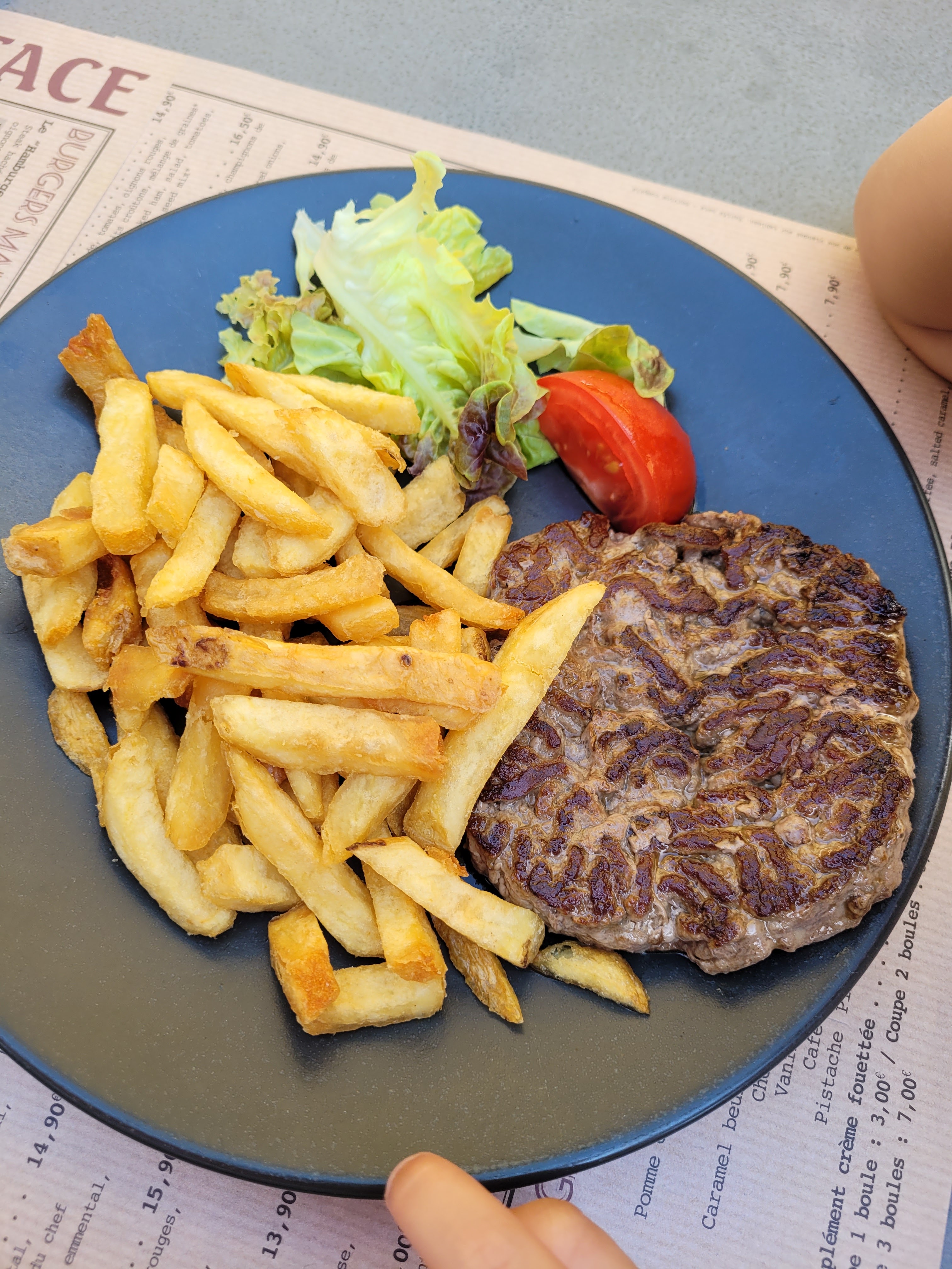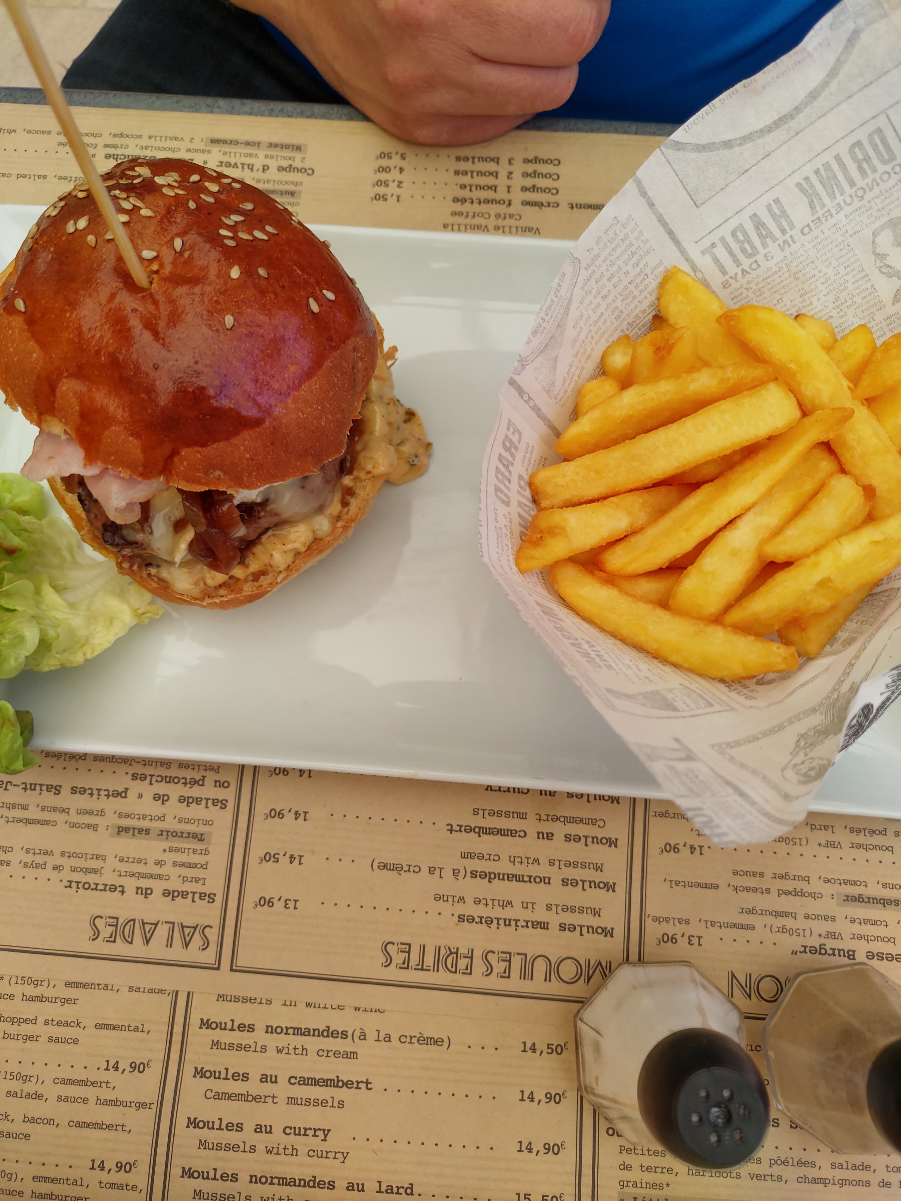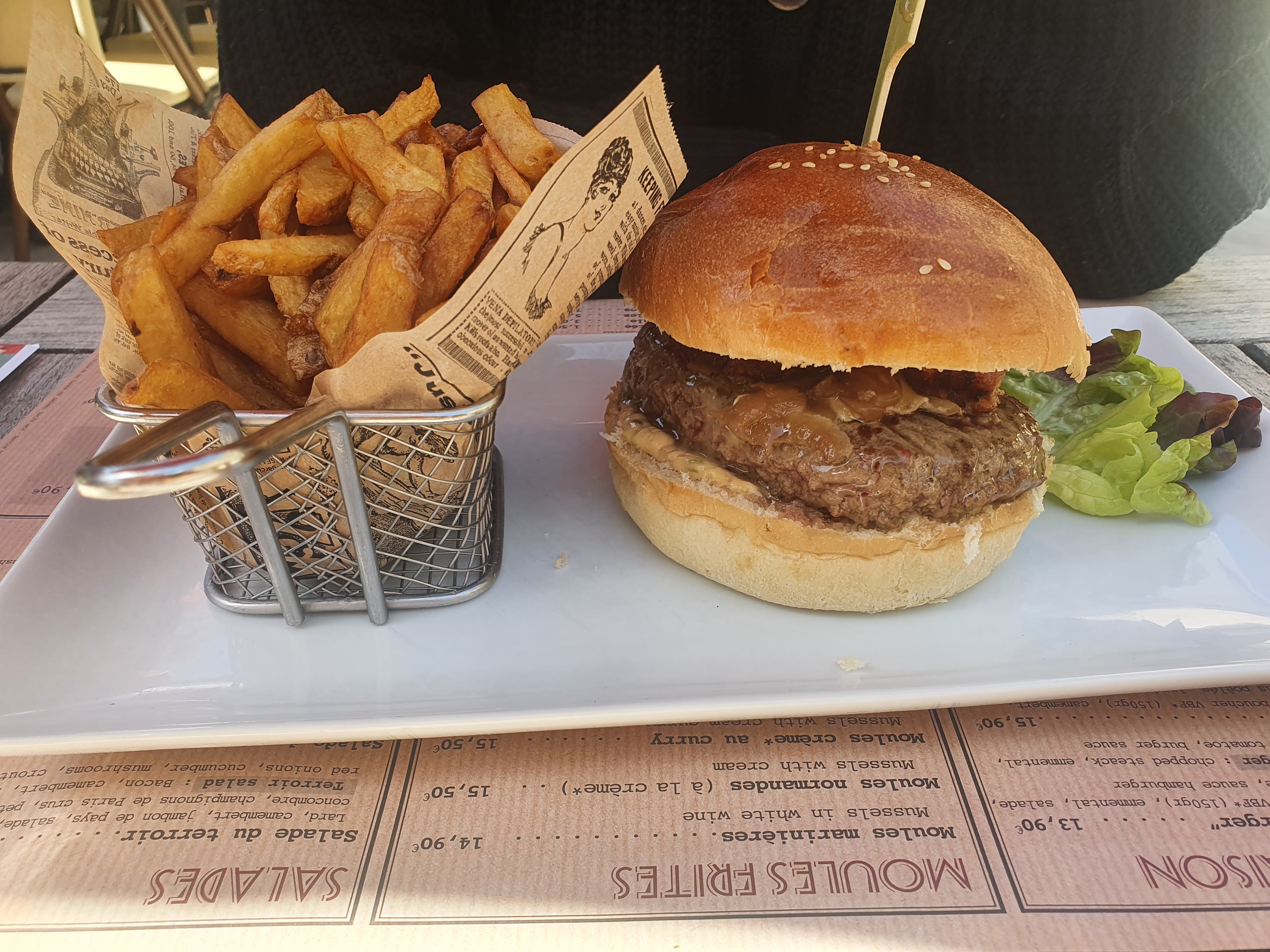 plat excellent, autant le burger que les moules . Je recommande++