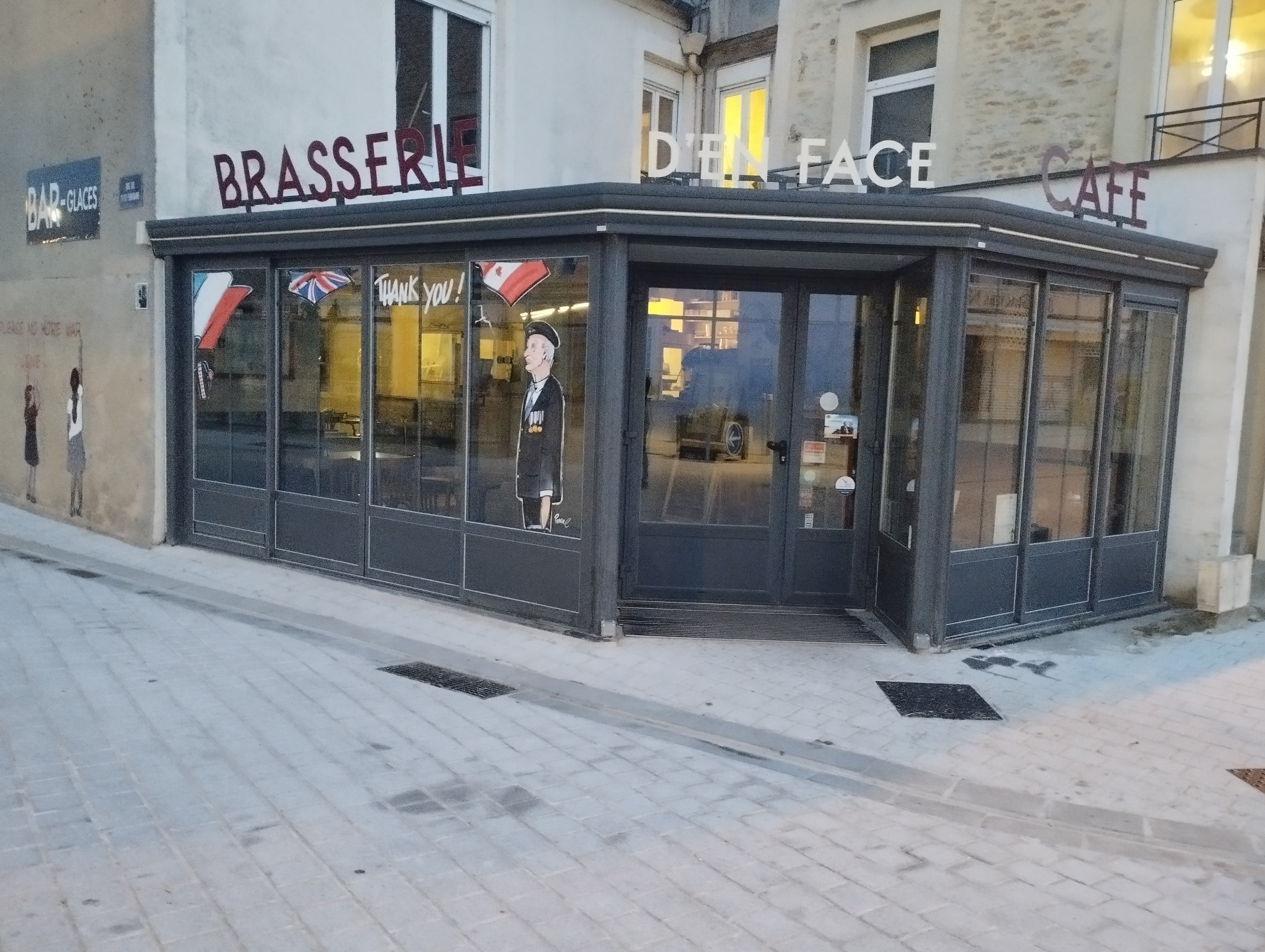 Très belle petite brasserie située au début de la rue non loin du musée du débarquement et de la plage. Nous y avons passé un moment très agréable sur la terrasse et nous avons été accueillis et servis avec le sourire. Un superbe moment entre amis en imaginant avec quelques difficultés ce que put être l'atmosphère de ce lieu historique lorsque l'armada arriva et déversa son flot de soldats et de véhicules en tous genres !...