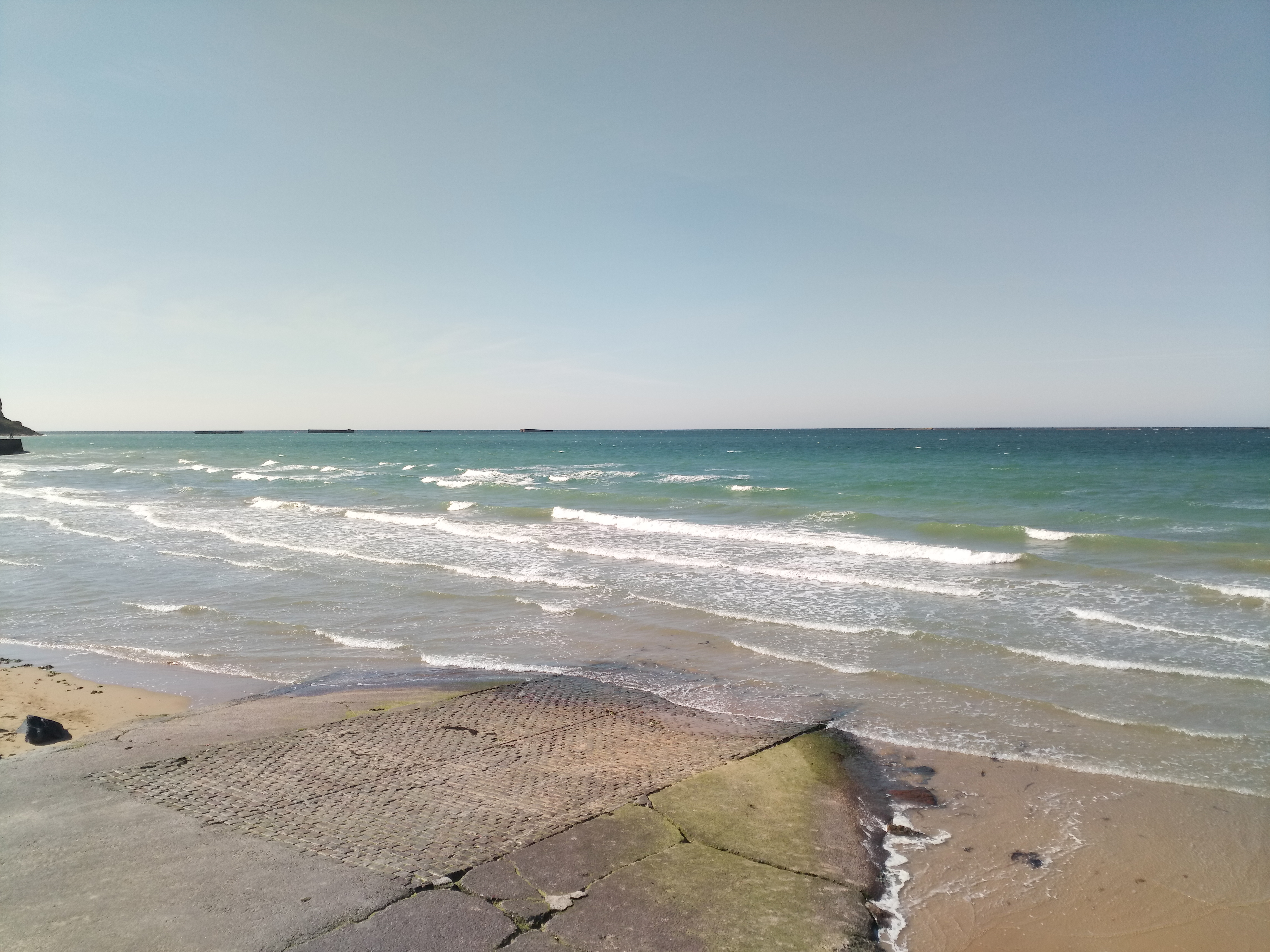 Petit restaurant de bord de mer, la décoration vintage y est sympa et le service est rapide, les prix corrects...Cependant les serveuses ne pensent pas à nous apporter une bouteille d'eau sur la table, et d'ailleurs nous devons la demander en fin de repas. ...on ne nous propose pas le plat du jour .... Le saumon grillé est bon, les frites un peu sèches. ...restaurant sans prétention, mais bien situé près du musée du débarquement.