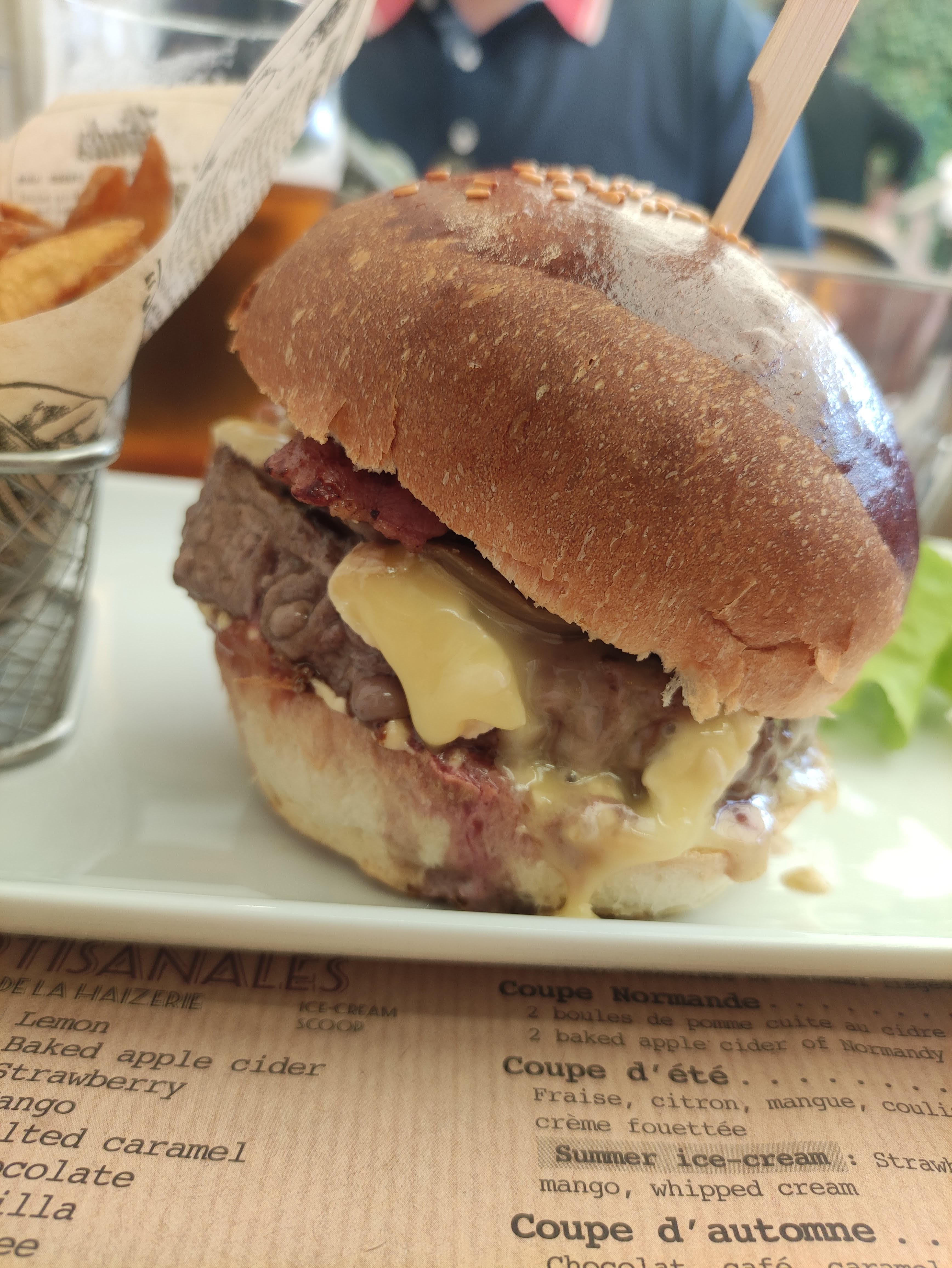 Malgré la serveuse un peu bourrue , excellent établissement. L'ardoise Normande est à tomber. Charcuteries, fromages, frites, extra. En plus assiette copieuse. La coupe Normande est copieusement arrosée de calva....