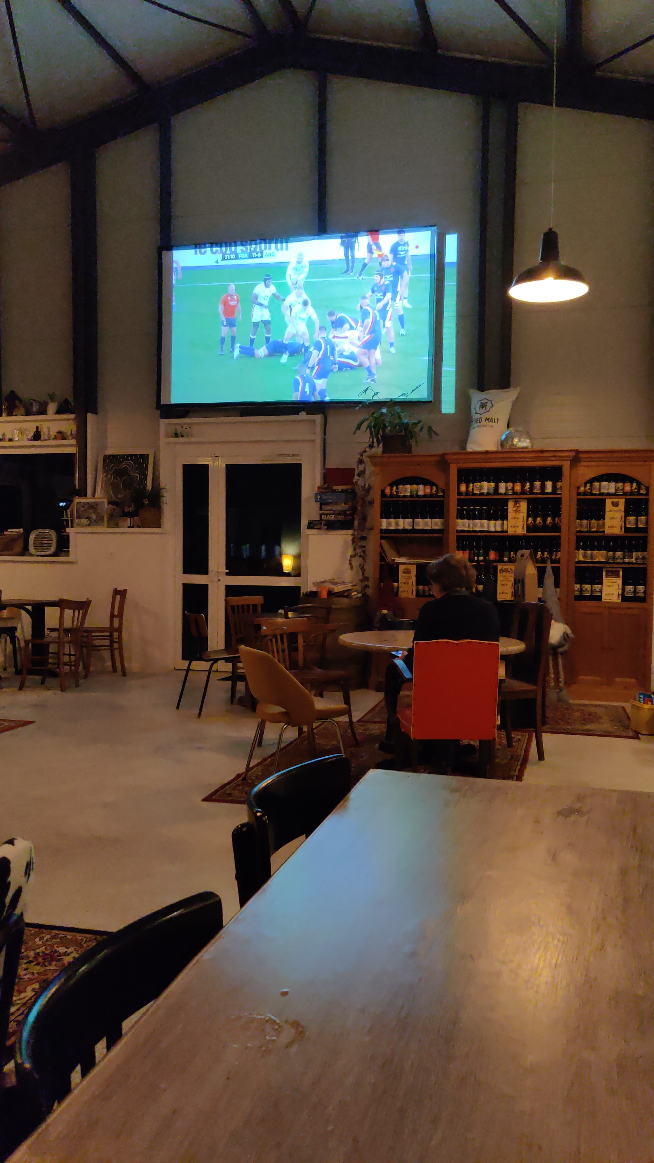 Lieu sympa à la déco vintage, qui propose des jeux de société et un grand écran pour, je suppose, les événements sportifs. Personnel souriant et sympathique. L'idée est très chouette. Bières à la vente peut être un poil chères.