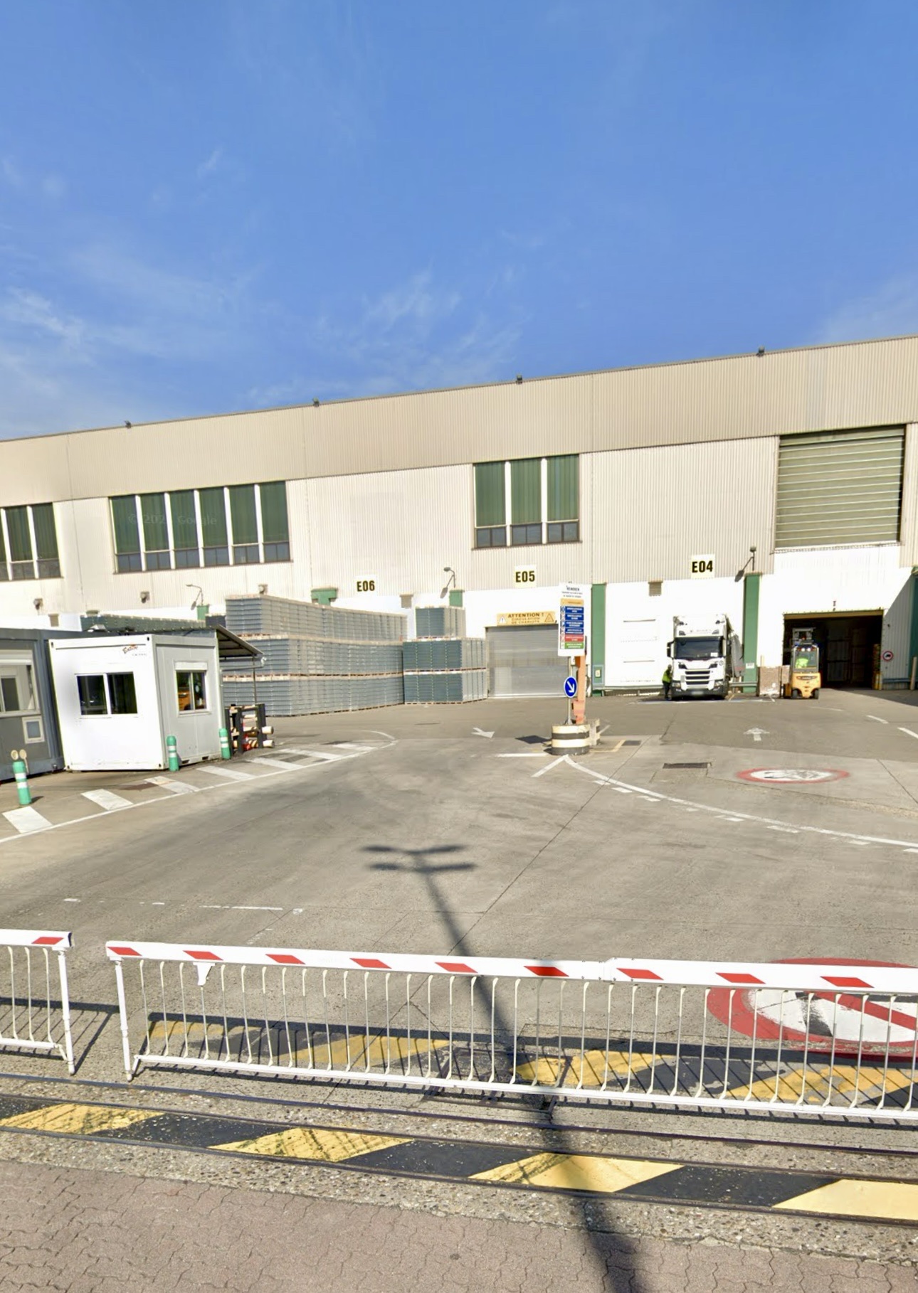 A travers les allées jusqu'aux sociétés de stationnement, casque, gilet, chaussures de travail obligatoires. Le bureau ne connaît pas l'anglais, seulement le FR. Il y a une douche.