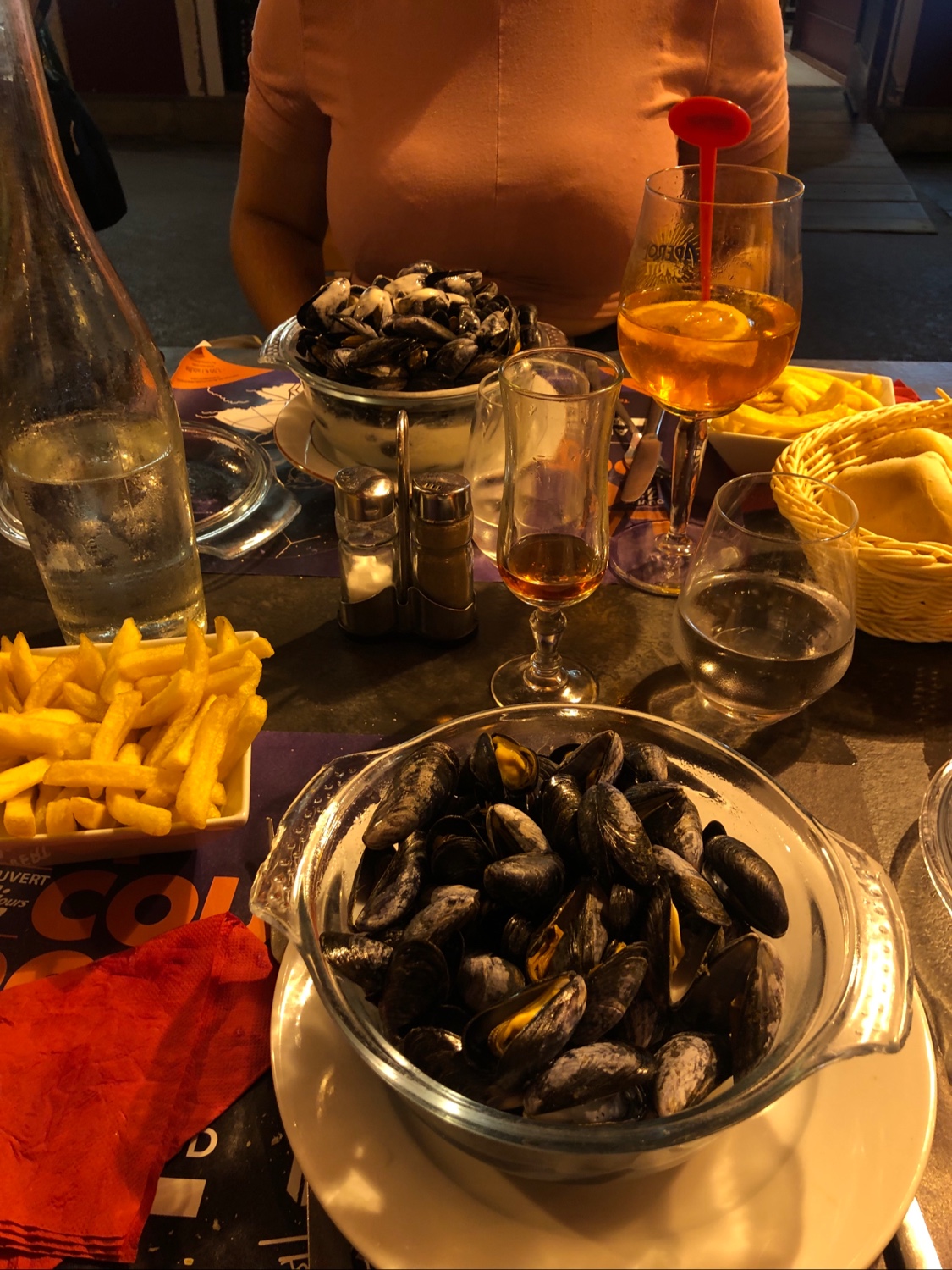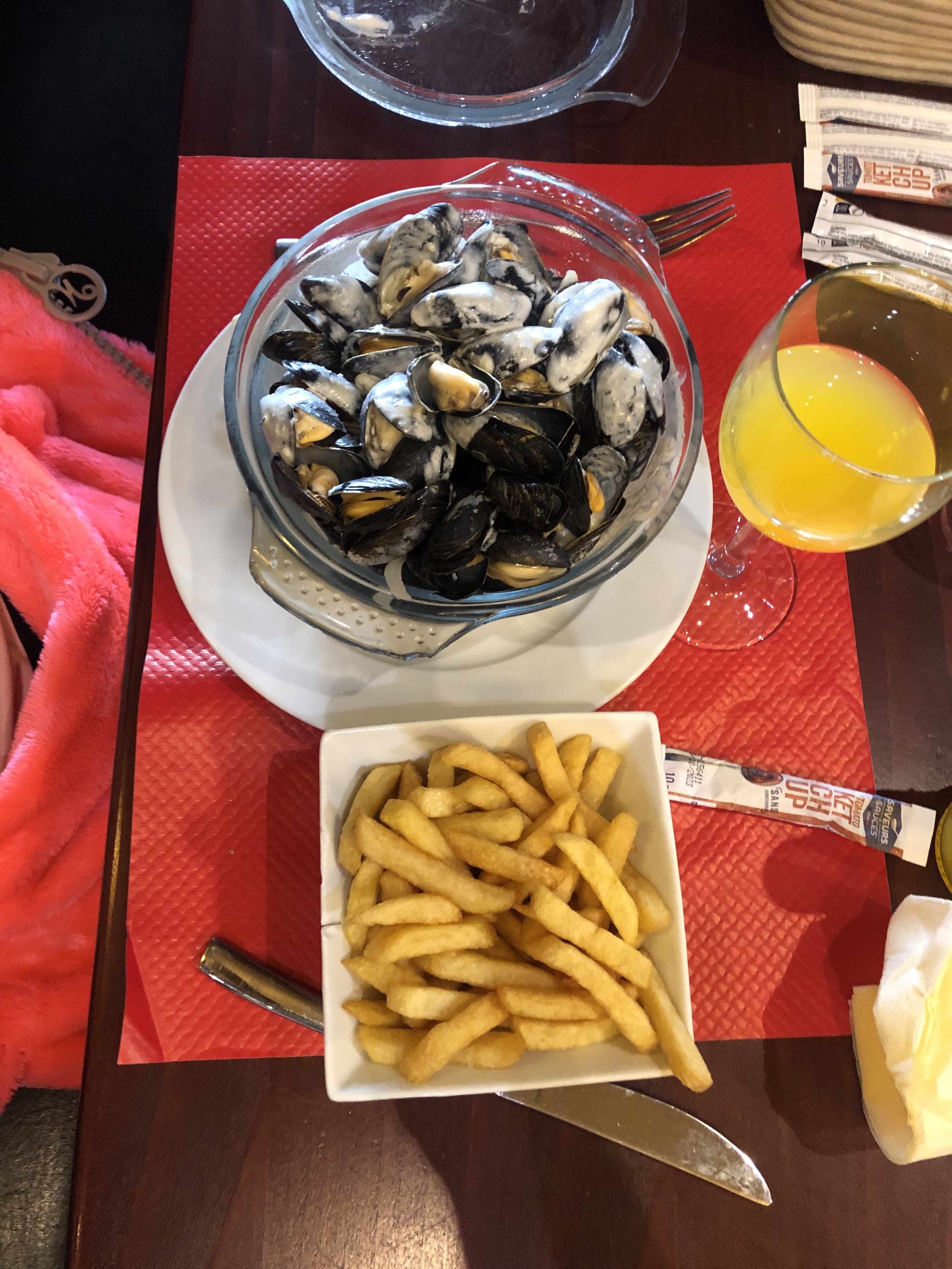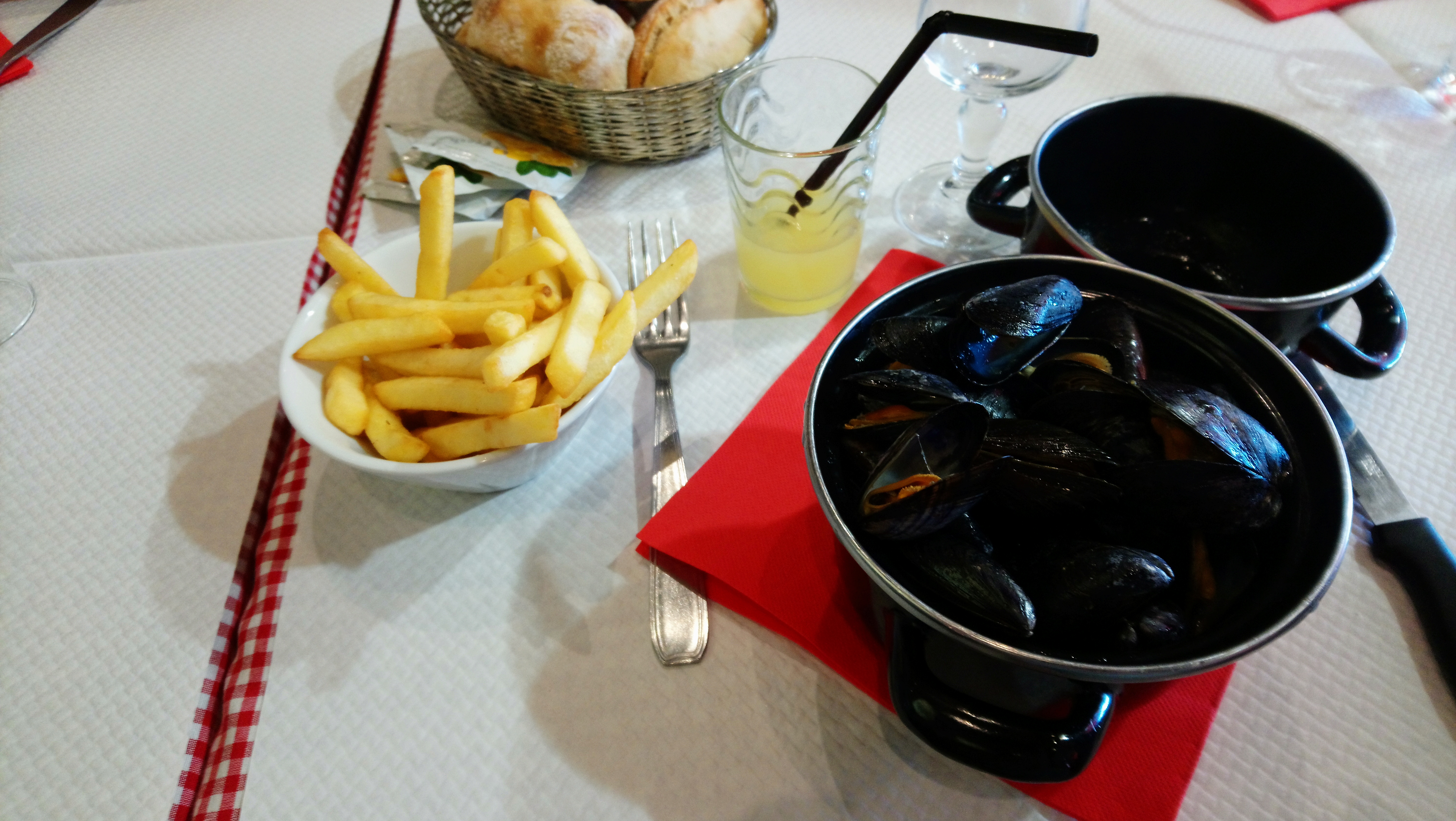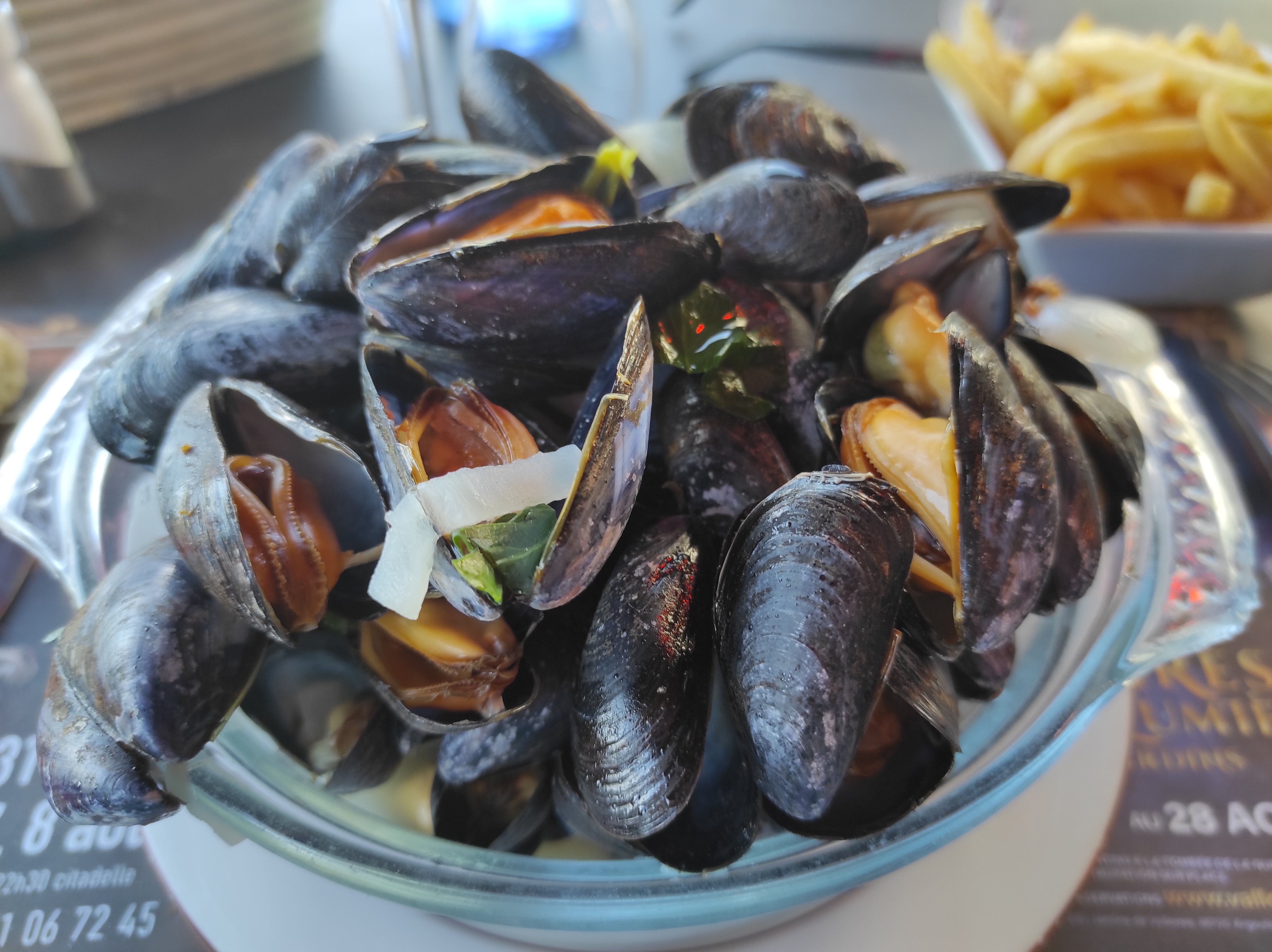 Moules pas terrible. Frites surgelé vraiment bof. Trop cher pour la qualité. Mauvais rapport qualité prix.