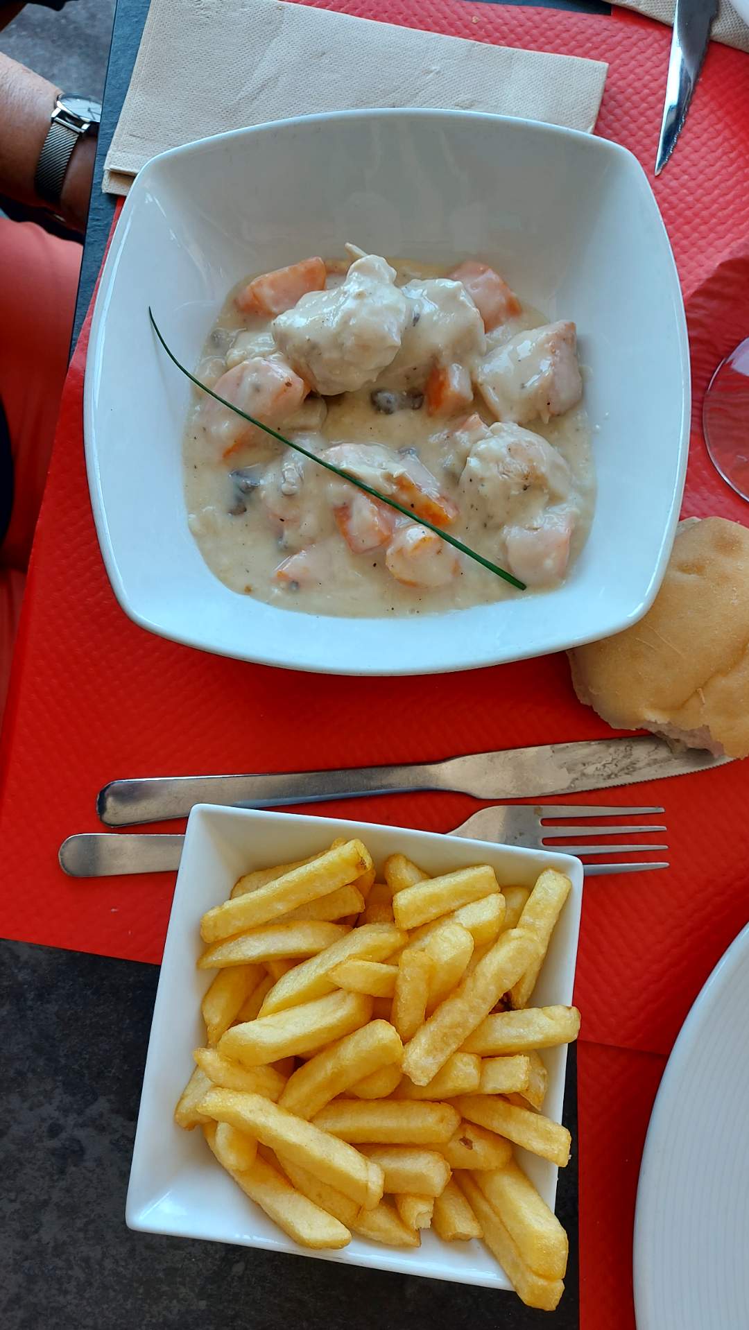 De l’attente car beaucoup de monde en ce week-end de pont du mois de mai mais cela valait le coup. Le menu a 18€90 est parfait, très bien mangé et copieux. Le responsable de la terrasse est fort sympathique. Bref très bonne adresse, on reviendra.