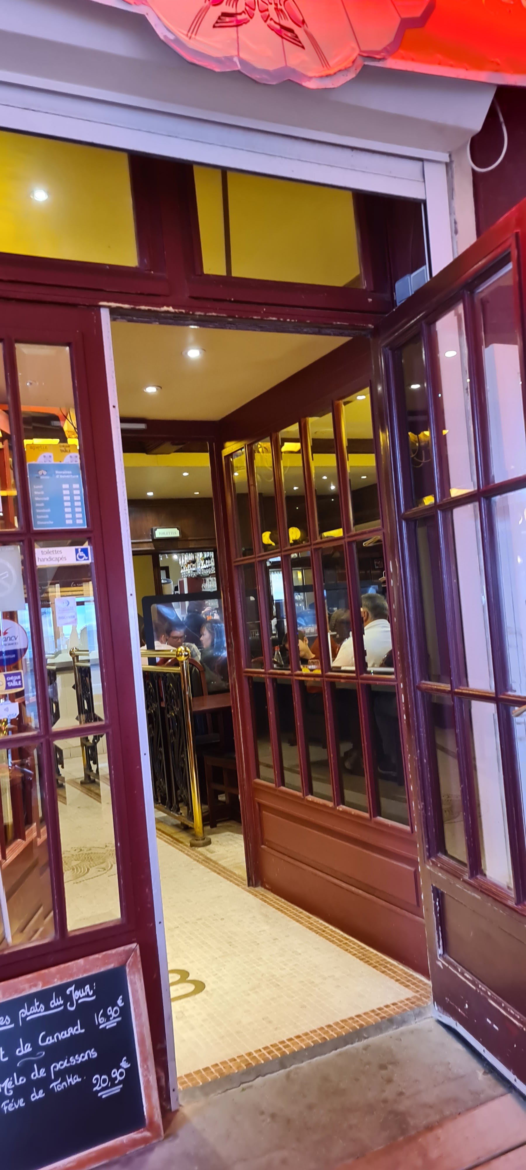 Nous faisions la queue à l’entrée de la brasserie pour espérer s’y installer. Un serveur est passé devant nous 4 fois sans nous regarder. Puis il m’a demandé combien nous étions j’ai répondu 5,2 adultes 3 enfants . Il a répondu : ah navré j’ai qu’une table pour 4 et il est parti ! Il aurait pu nous demander de patienter au moins…mais non !
