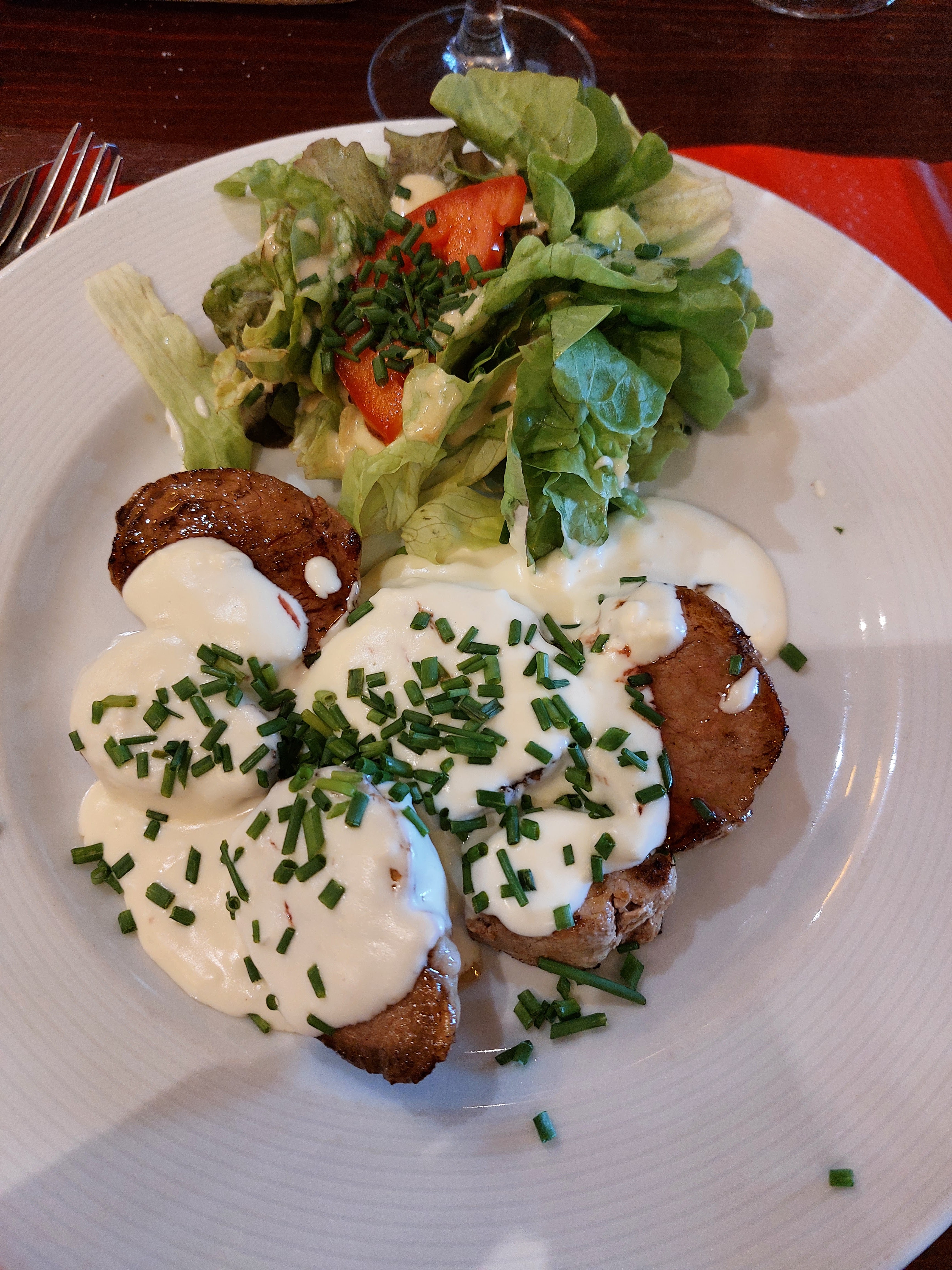 Un restaurant que nous avons l'habitude de faire quand nous sommes dans la région. Mais cette fois ci très déçu. Nous avons commandé un apéritif, jusque là OK. Nous avons pris ensuite pour mon épouse une pièce du boucher sans garniture car elle a un soucis de santé qui l'empêche de manger des crudités et vinaigre etc... Et pour moi un pavé de saumon que j'ai demandé mi cuit. L'assiette de mon épouse servi avec crudités et tt qui va avec et pour ma part un saumon archi cuit. Les plats ont étés servis alors que notre apéritif n'était pas fini. Et pour être servi en boisson pour nos plats, on a du attendre la fin de notre repas. Déçu de chez déçu. Pour ma part à éviter.