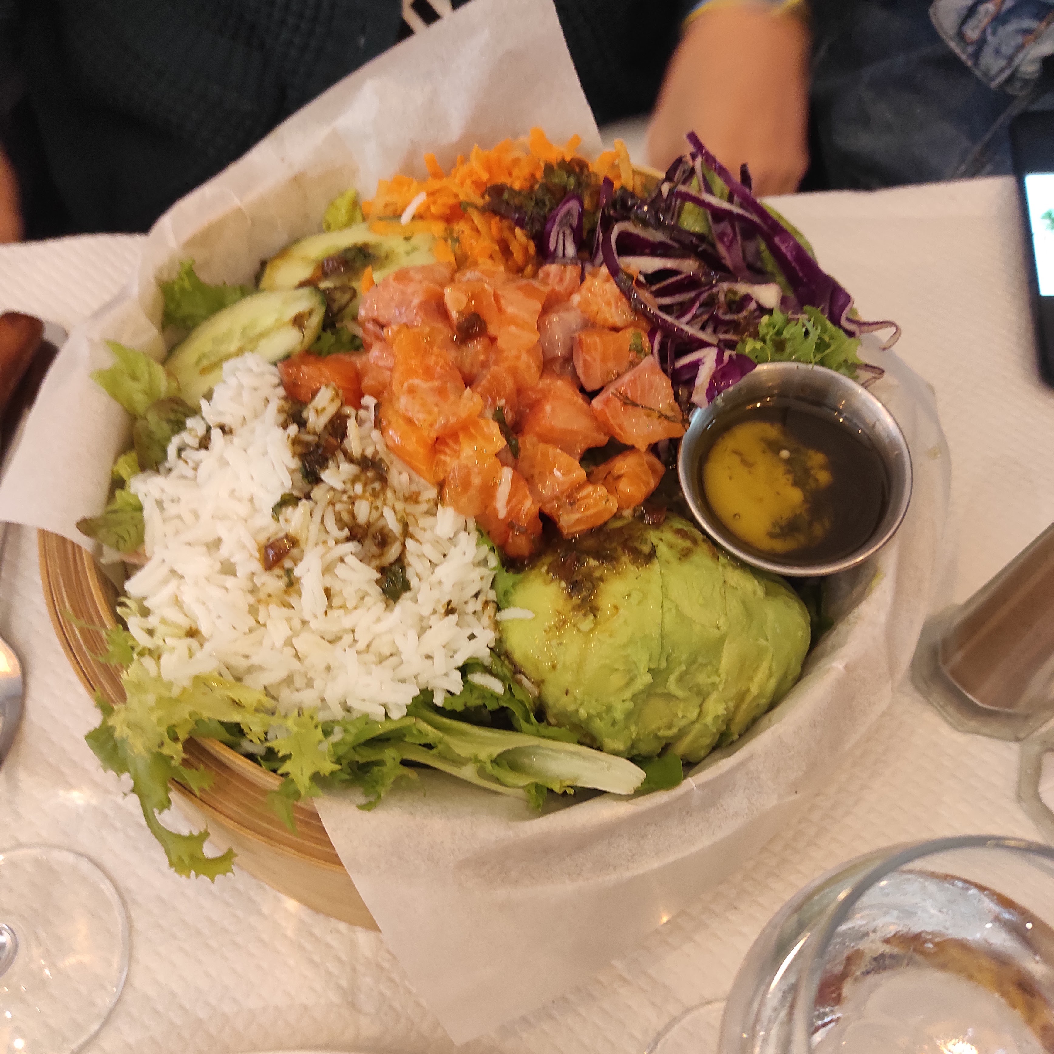 Première fois que je viens depuis que cela a changé de propriétaire. J'ai pris une salade Bowl. Grossière : beaucoup, beaucoup de salade verte avec des tomates a peine mûres coupées en 4 gros quart, du concombre coupé en rondelles de 2 cm d'épaisseur etc. Le pire est le cris regulier de la patronne qui parle mal aux cuisiniers, cela m'a beaucoup gênée pour eux. Je n'y remettrai pas les pieds et souhaite beaucoup de courage au personnel. Il y a meilleur, moins cher et plus sympa à Asnières.