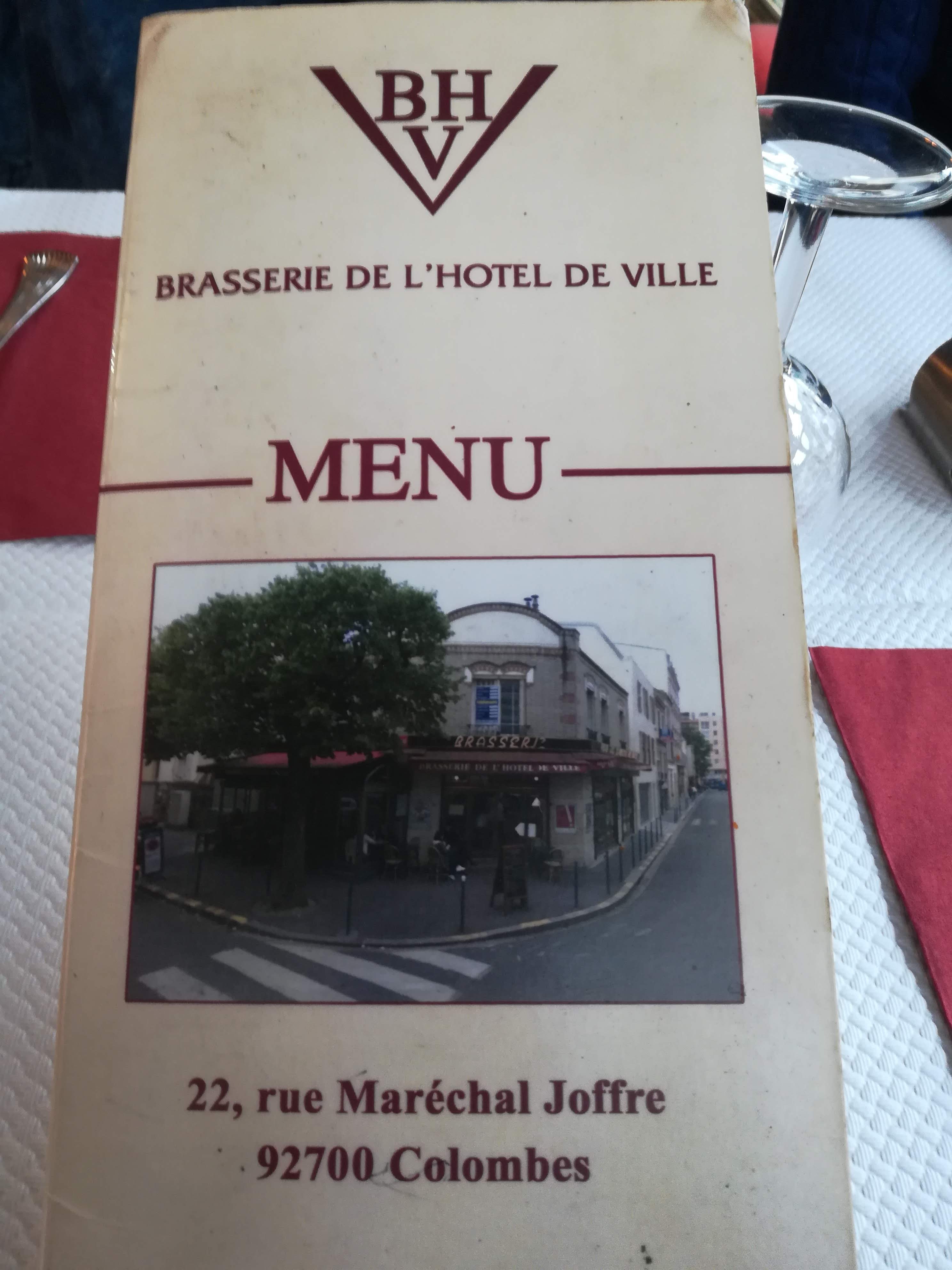 Cette brasserie, sans aucune mesure avec une enseigne historique, se trouve en face de la mairie de Colombes. Nous sommes en présence d'une brasserie, permettant de déjeuner en l'occurrence, très simplement et rapidement. Bien que certaines personnes évoquent une cuisine française, je dis, pardon, j'écris que cet établissement est Maghrébin, puisque le jour où nous sommes venus, un vendredi, il y avait en dehors du menu et de la carte un couscous. Sans parler du personnel, qui n'a rien d'auvergnat ou basque. En aparté, il serait souhaitable de donner un avis simple et honnête, plus tôt que de parler de choses que l'on ne maîtrise pas. Le menu, une entrée et un plat (10€90) au moment où nous y sommes rendus, reste convenable en se basant sur ce que l'on peut trouver ailleurs. Il y eu une terrine de poisson bonne et de goût, puis des pièces de viande de bœuf, avec une cuisson aléatoire et d'une qualité en rapport au menu. Le dessert fut, par contre, meilleur que prévu. Le service fut correct et la note, acceptable.