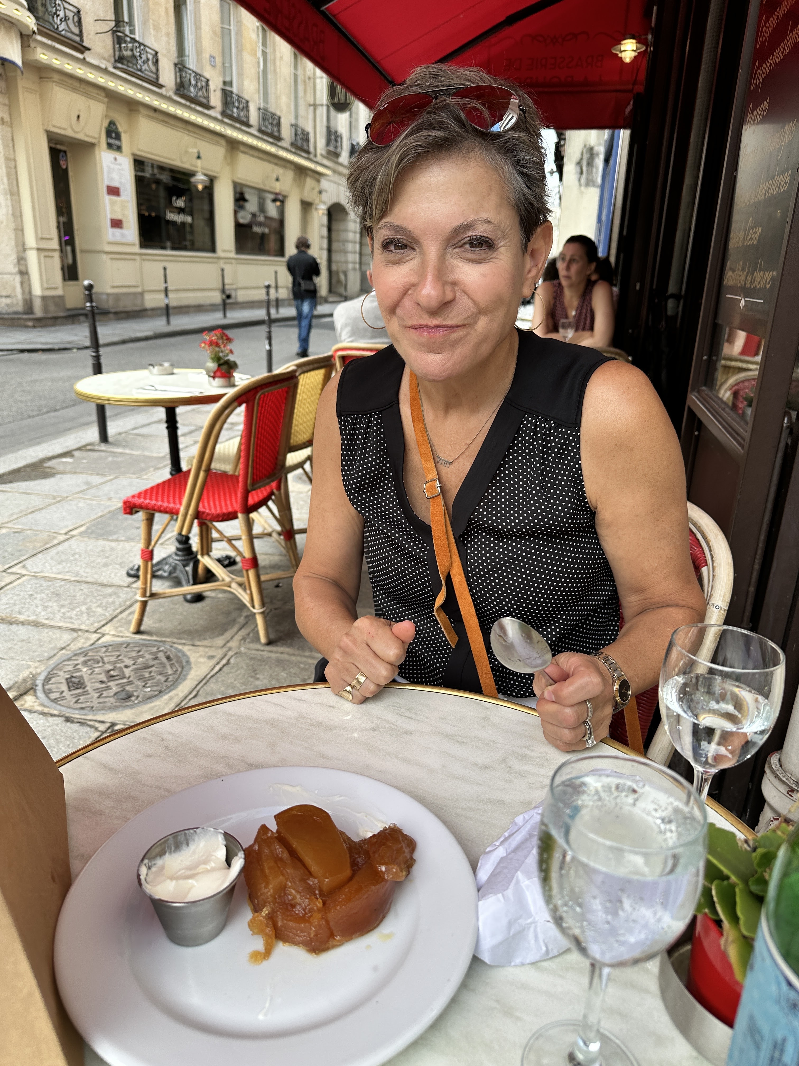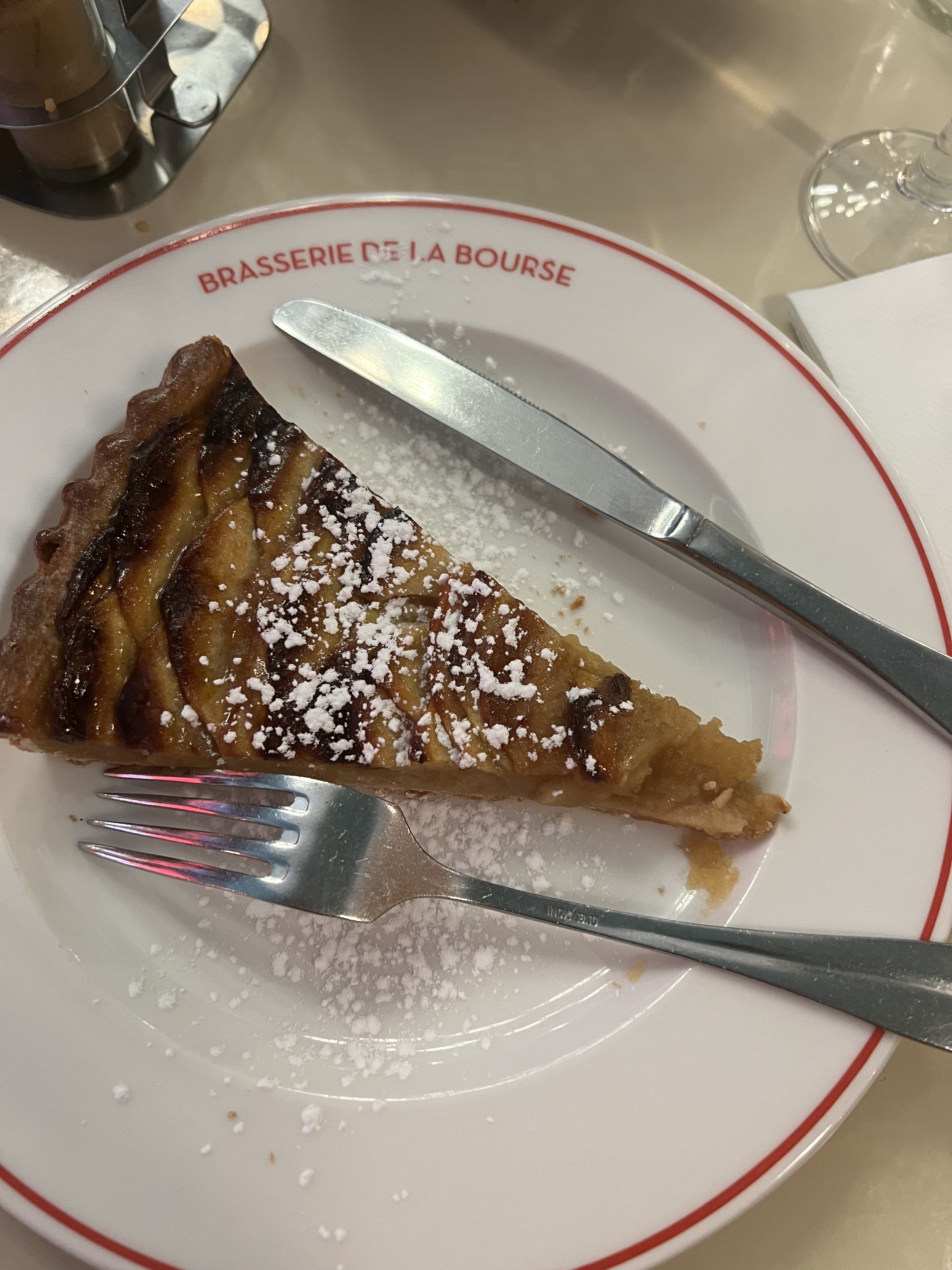 Nous avons choisi ce café au hasard après avoir visité le Louvre et nous en étions très contents !! Martin notre serveur était le meilleur !! Il avait d'excellentes recommandations pour le déjeuner et la Tarte Tatin à la crème était divine (sa sélection). Nous avons eu une expérience tellement fabuleuse que nous sommes revenus et avons pris notre photo avec notre serveur amusant, minutieux et attentif. Je recommande vivement la Brasserie de la Bourse pour sa cuisine délicieuse, son atmosphère merveilleuse et son service délicieux.