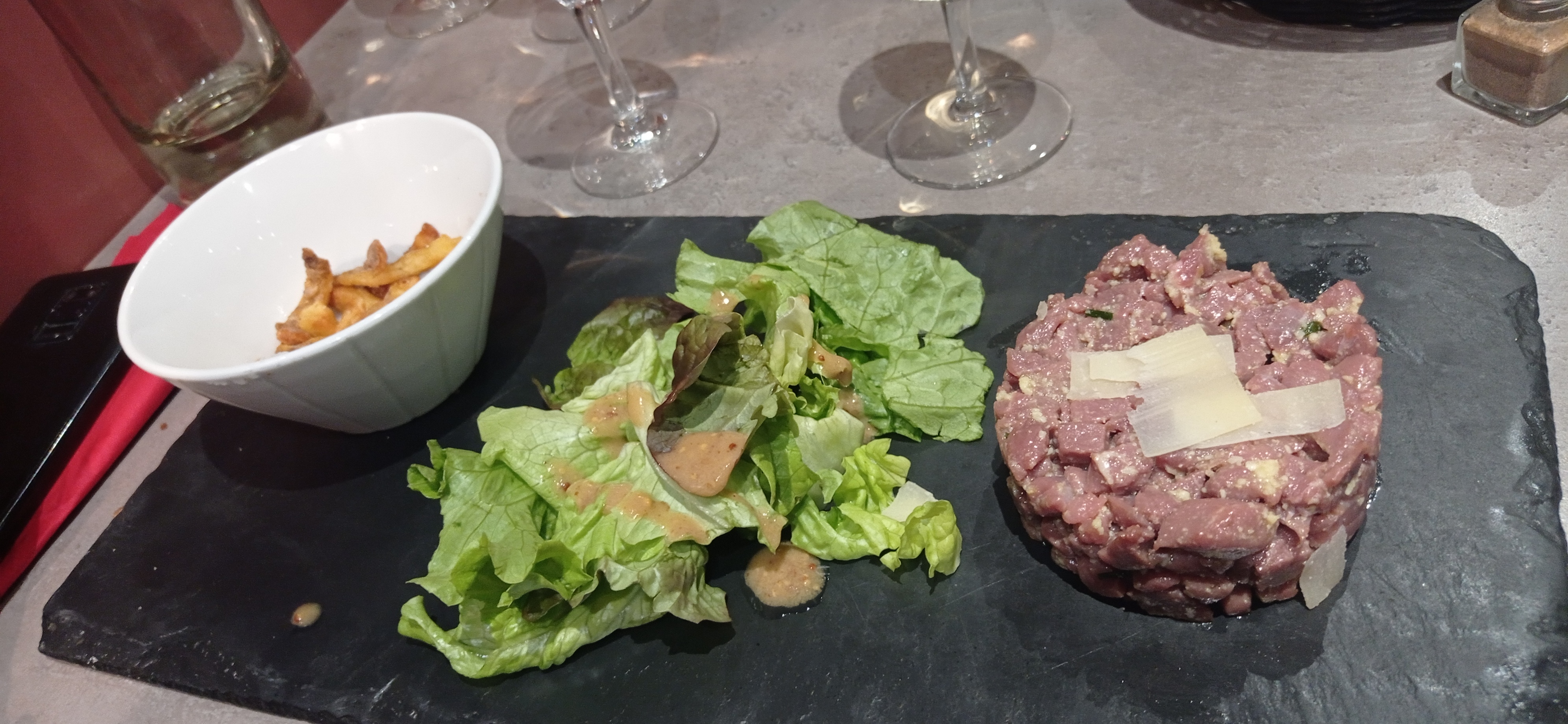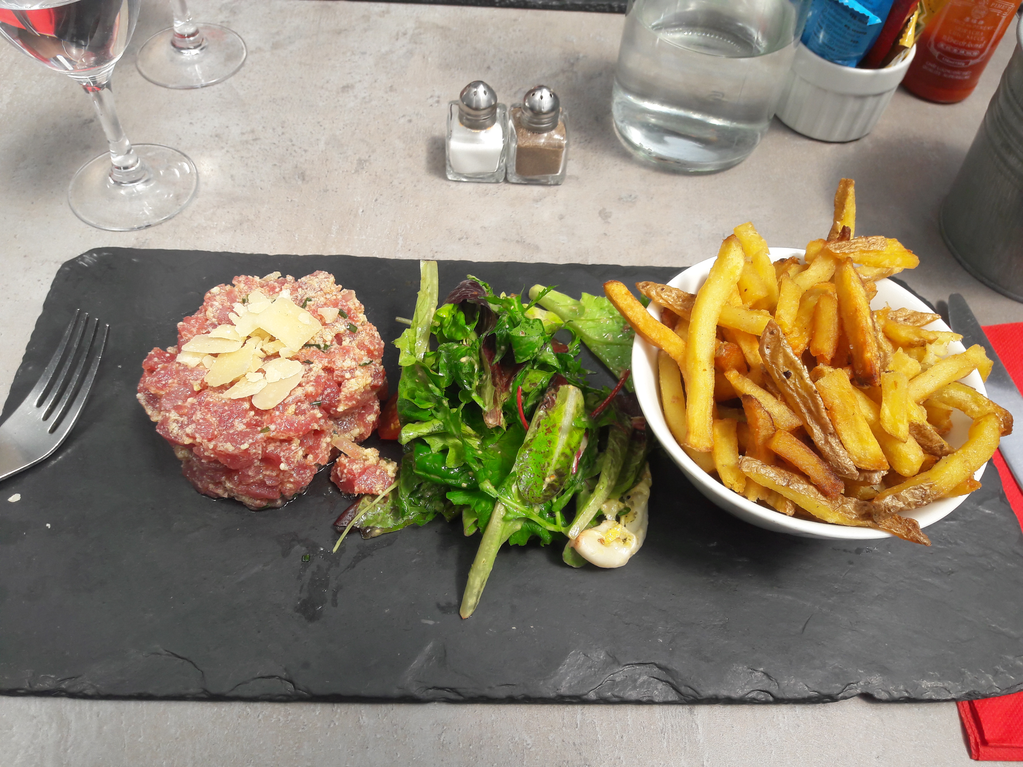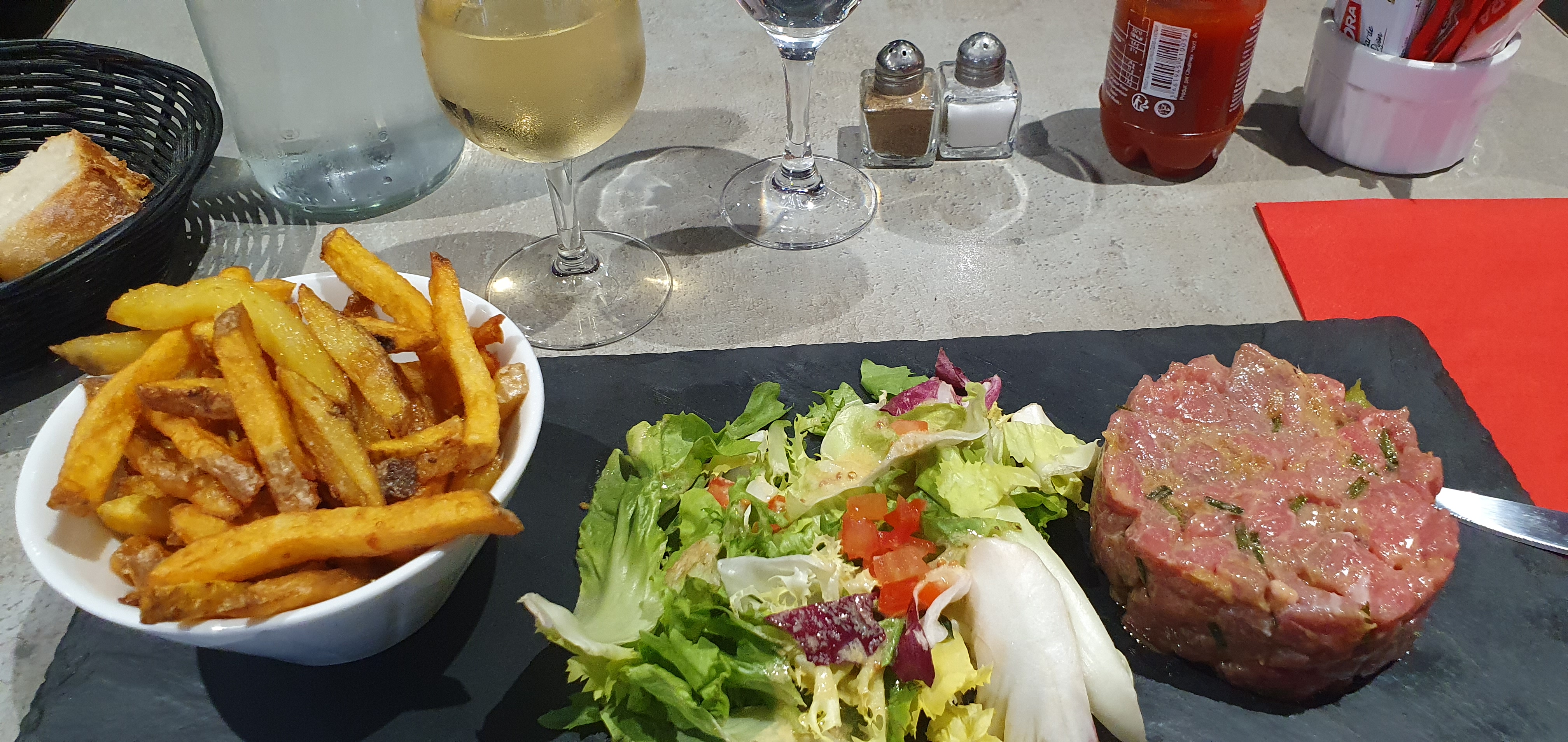 Le cadre est sympa. En revanche, le tartare de boeuf est juste passable.