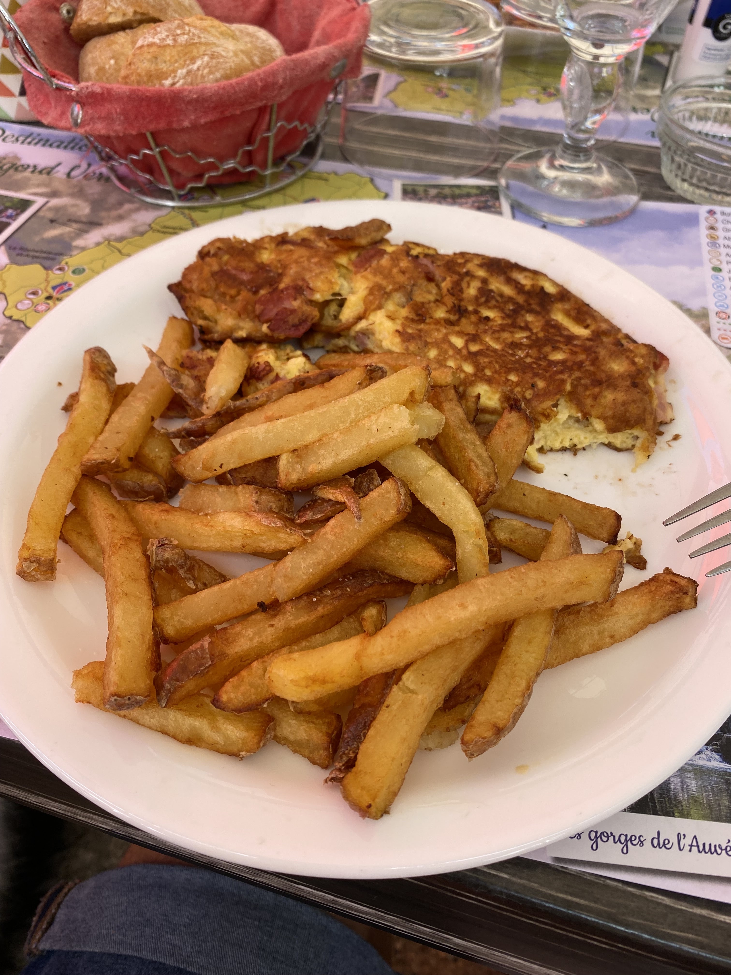 de passage à Nontron pour voir les couteaux, petite pause à la brasserie. 2 salades, niçoise et César et une omelette. C'était parfait : bien garnies avec des produits frais. Servies assez rapidement alors que la serveuse était seule (elle court.. ) et qu'il y avait plus d'une dizaine de tables.