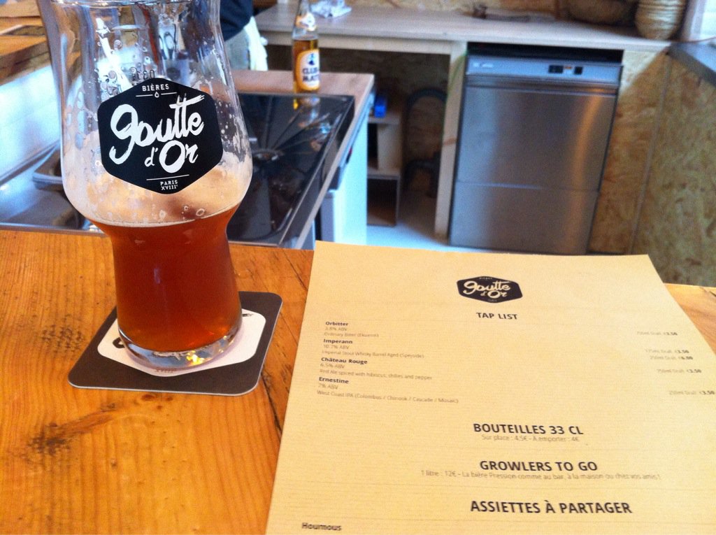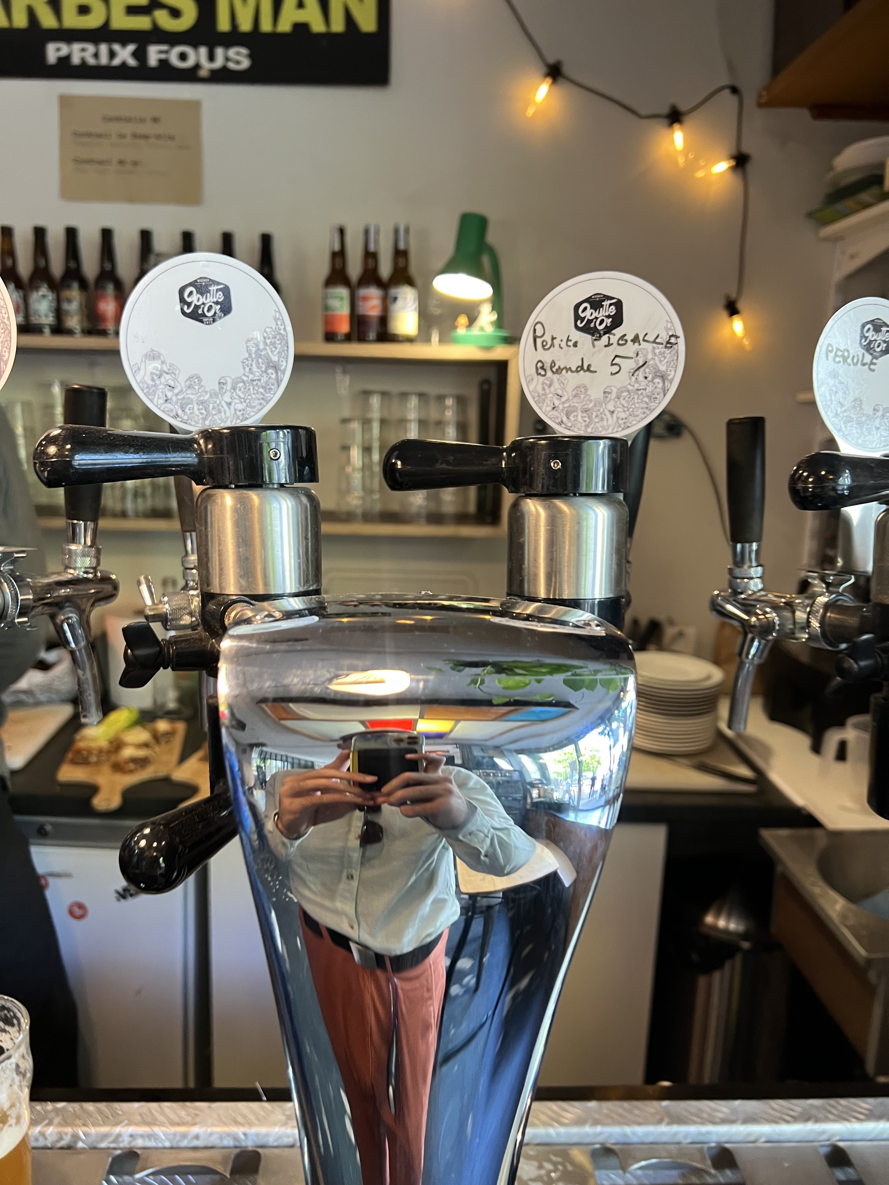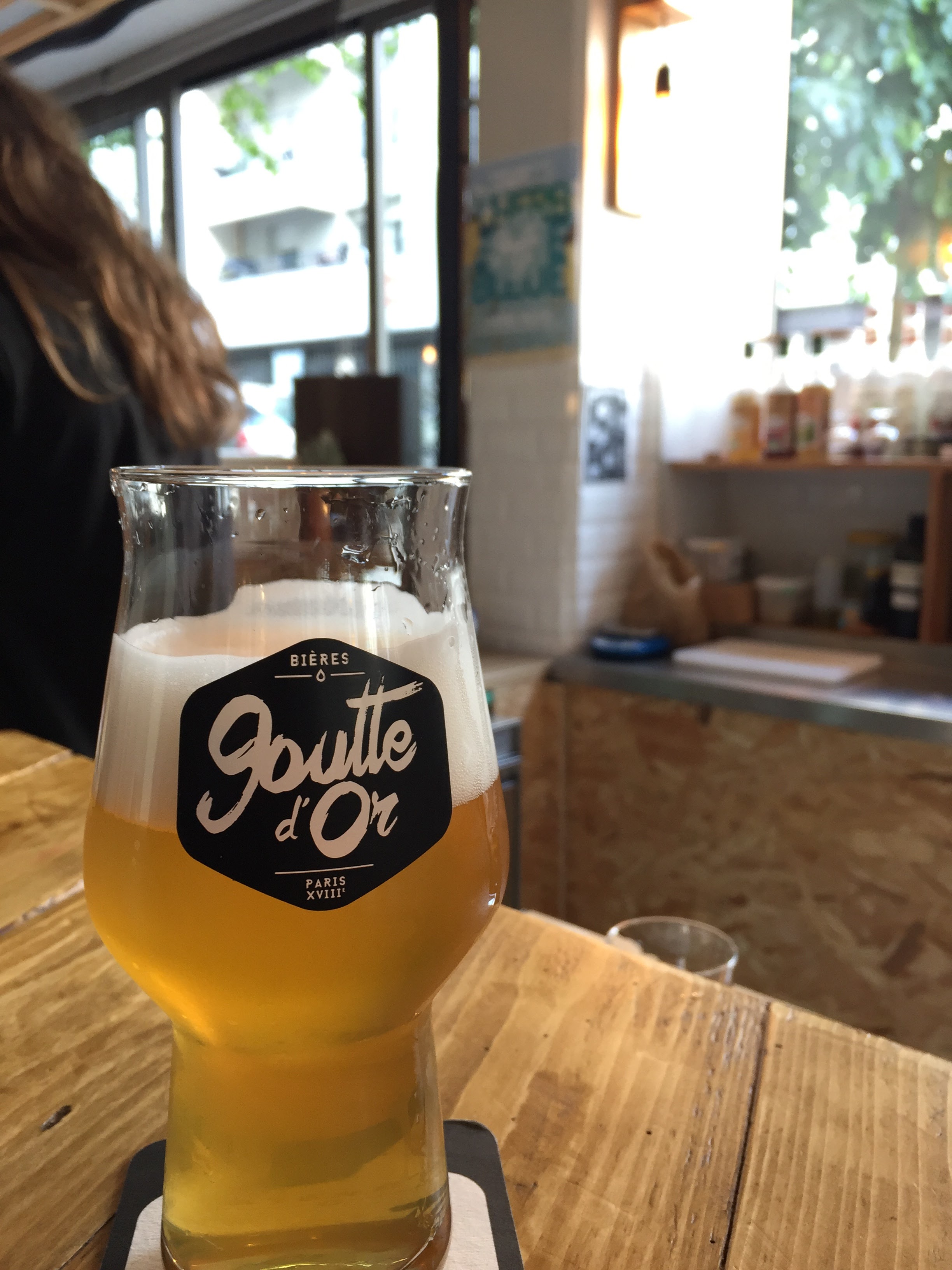 J'ai trouvé une grande brasserie dans le nord-est de Paris. Le bar comprend quatre robinets et diverses bouteilles de bière brassée maison. La Goutte d'Or propose de très bonnes bières uniques. Le jasmin sour était mon préféré, une acidité agréable et subtile avec juste assez d’épices ajoutées. J'ai aussi beaucoup apprécié la saison. C'était le parfait désaltérant après une longue journée de marche. Nous avons discuté un moment avec le barman. Il était super sympa et nous a même donné des tonnes d'options pour d'autres bars à bière de la ville.