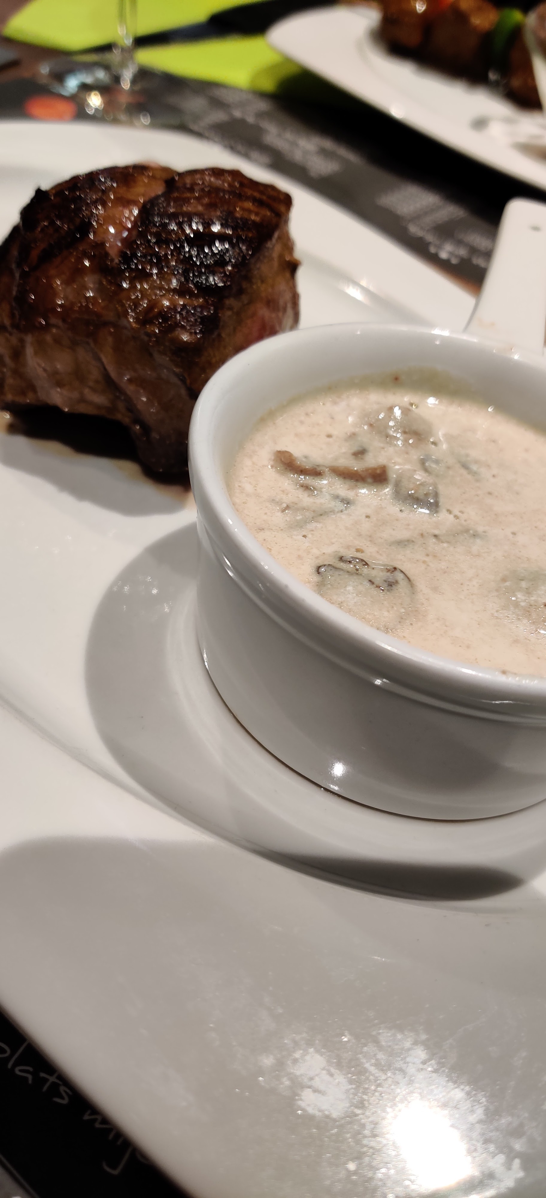 Bonne qualité de viandes. Je me suis régalé. Mais bon beaucoup trop de couverts donc trop de bruits, ça en est devenu désagréable. Le plus est un service au top.