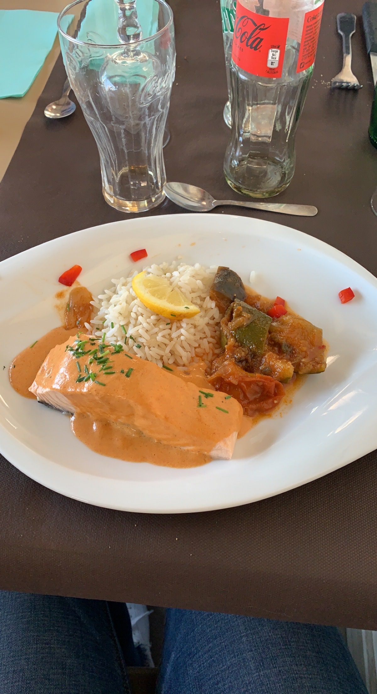 Ambiance bon enfant. Repas simple mais goûteux. La sauce beurre blanc avec le lieu noir, n'est pas la vrai sauce, elle a été faite avec de la crème