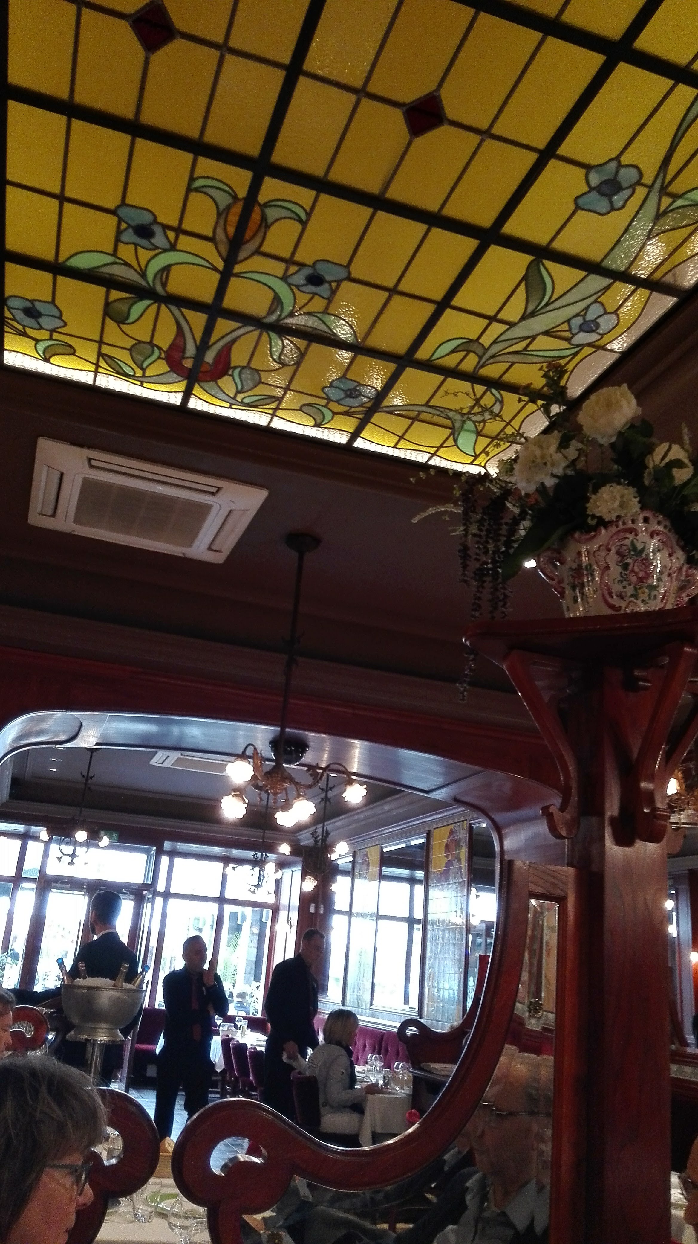Accueil téléphonique qui laisse déjà présager d'un service attentionné. L'endroit est tout simplement sublime : miroirs gravés, banquettes de velours rouge, boiseries travaillées... Bref un retour dans les années folles ! Côté gastronomie c'est plus mitigé : mon conjoint a fait changer ses frites servies froides et j'ai essentiellement trouvé des légumes dans ma nage de poissons. Le service reste très professionnel. A refaire !