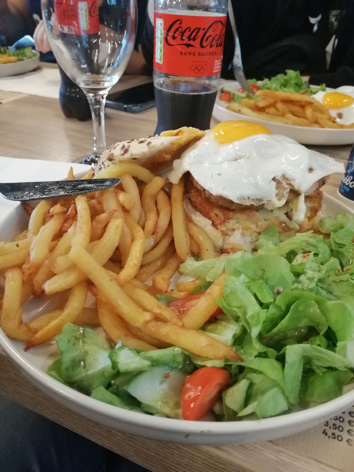 Succulent hamburger que j'ai du manger avec les couverts tellement il était gros, frites délicieuse. Service impeccable et surtout très courtois. La formule plat+boisson+patinoire était vraiment bien et m'a permis d'aller directement chausser les patins après manger (pas de fille d'attente) et est financièrement avantageuse, j'ai passé un super moment avec vous, merci beaucoup et à une prochaine 😁