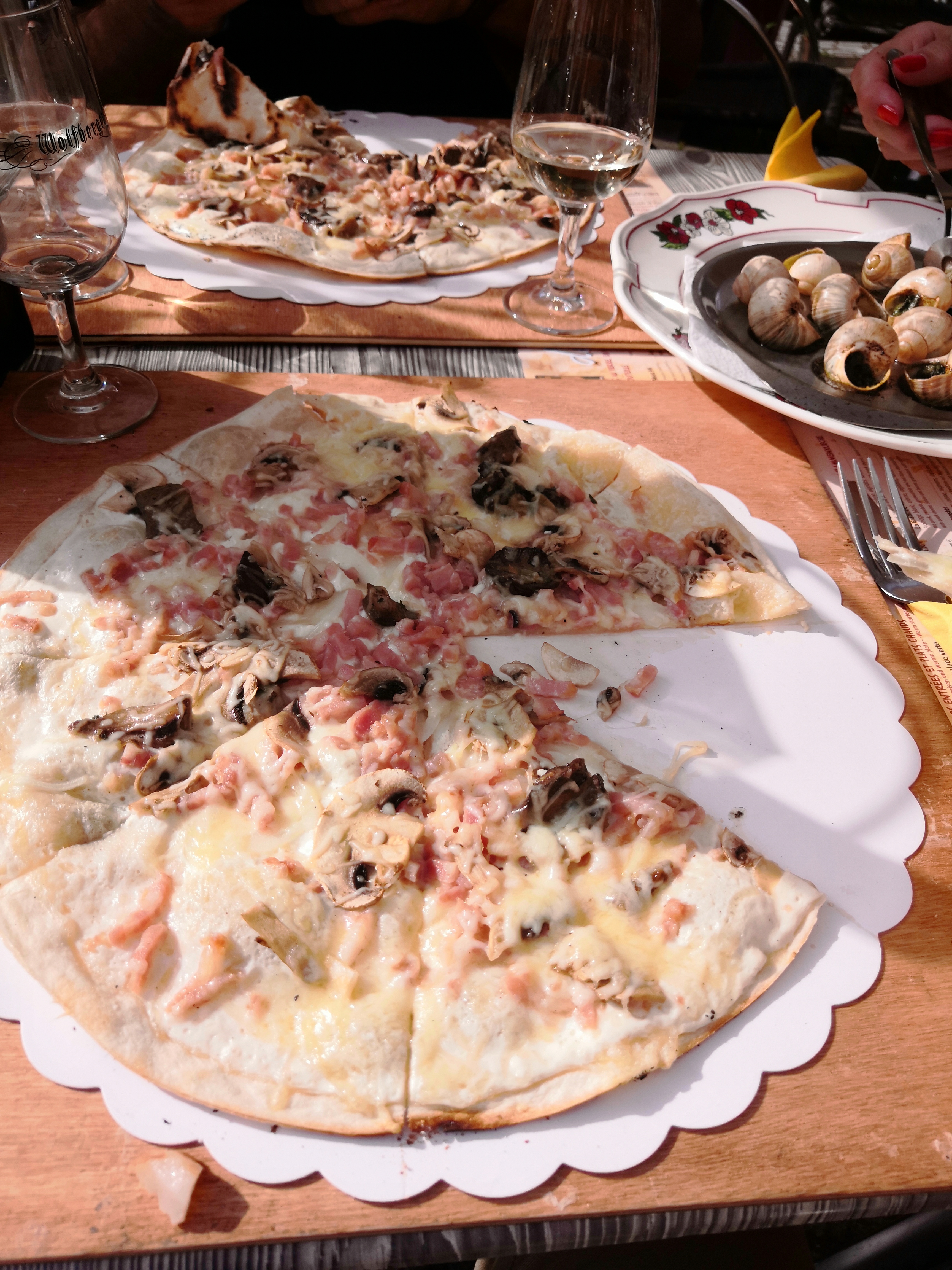 Service rapide quand la serveuse nous voit car nous avons du l'interrompre dans sa discussion qualité bof bof Tart flambées industrielles Bref un restau à touristes Un peu déçu mais bon après une montée au château tout passe qd même