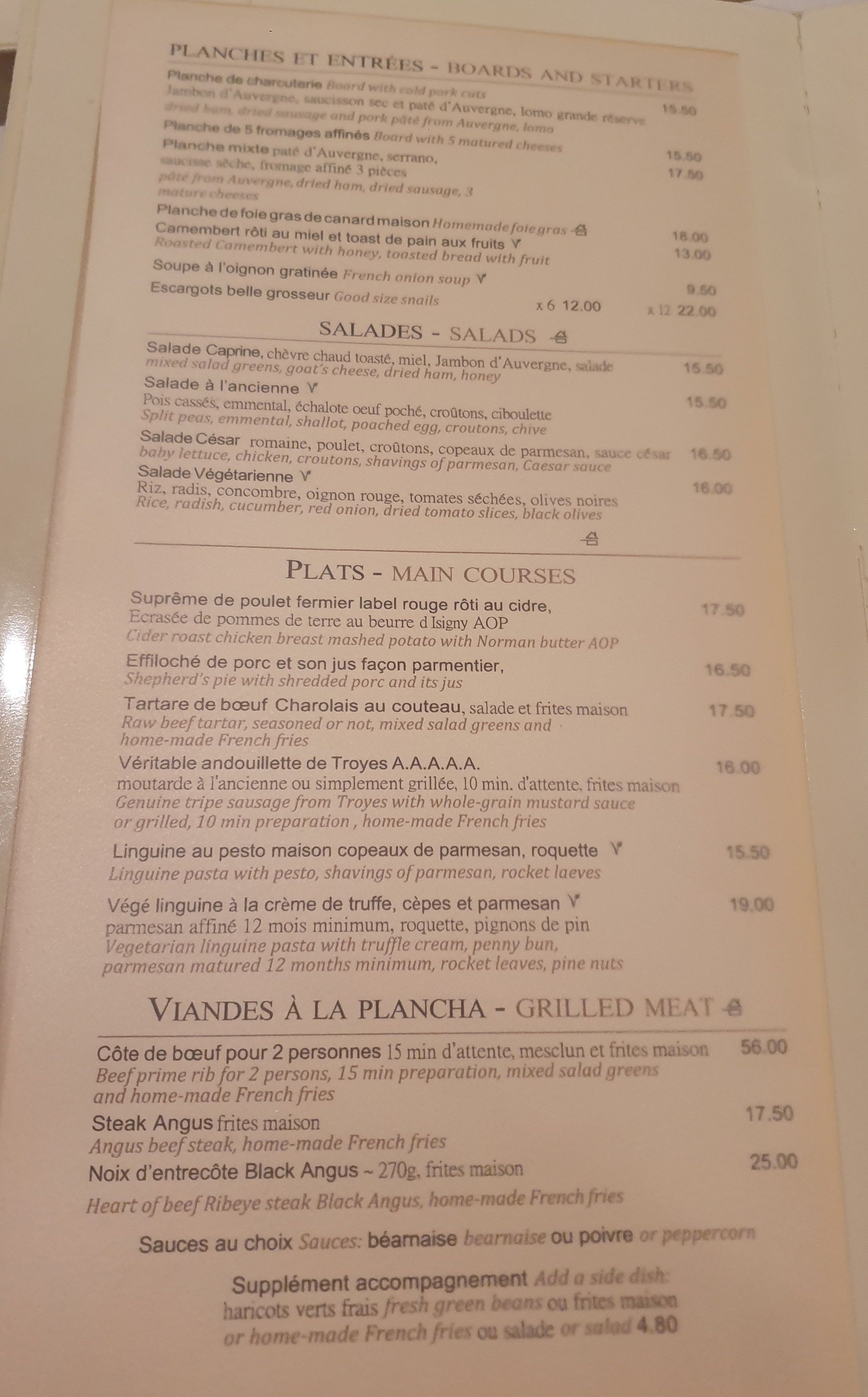 assez cher mais bon on est à paris … sinon le restaurant est magnifique, mais je m’attendais à plus de choix sur la carte ..