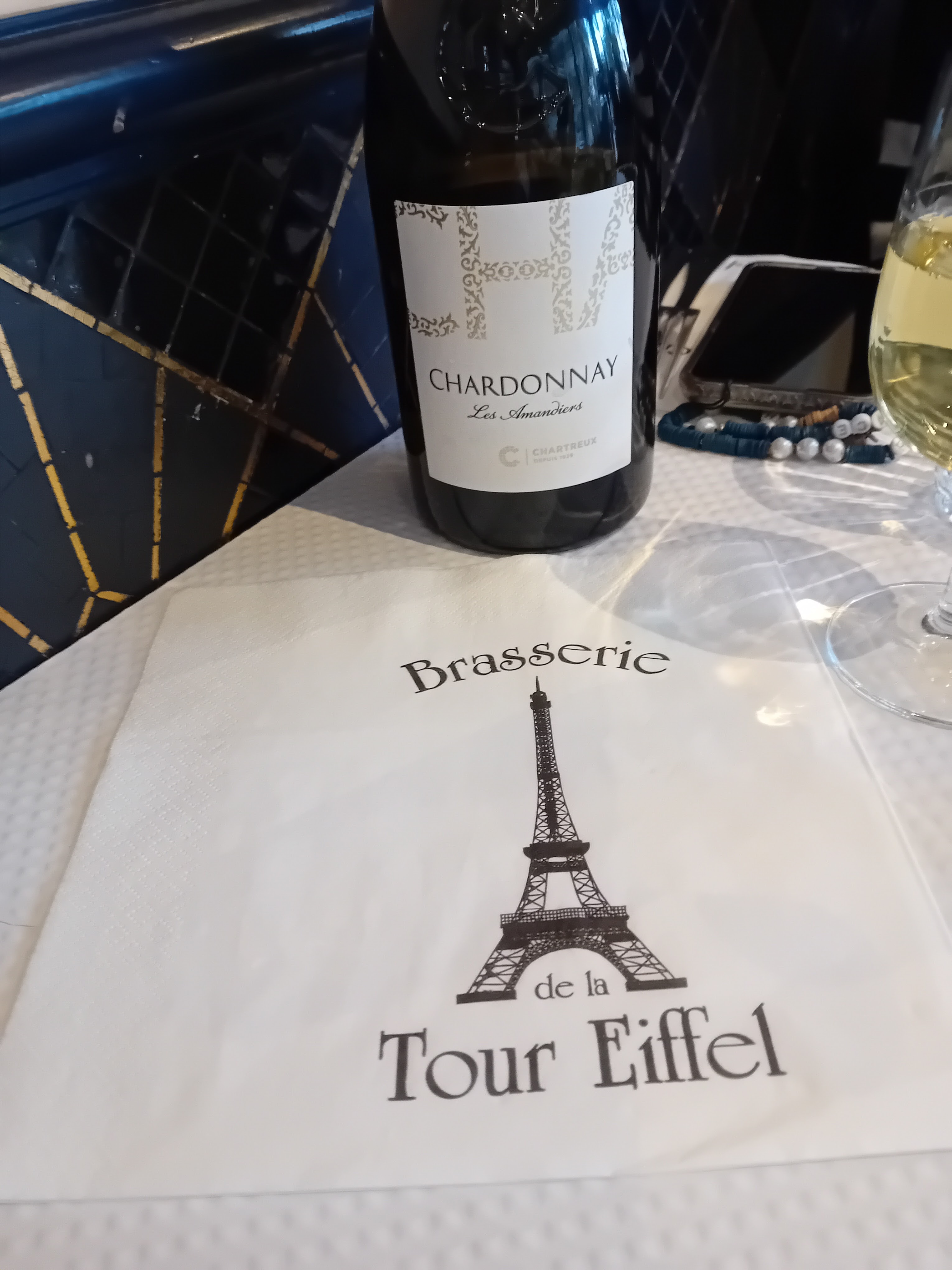 Nous avions choisis le resto pour la vue sur la Tour Eiffel, ce qui n’était pas le cas, en revanche la proximité avec le lieu y est. Pour le prix, nous avions été vraiment déçues. Nous avions prix des salades et franchement quand j’ai vu les 2 pauvres toast miel chèvre presque froids se battre en duel sur des toasts type canapé foie gras avec 1 tomate coupé en 2 et bcp trop de salade verte… pour 16,50€…. Je trouve que c’est exagéré. Attrape touristes clairement… Le coca a 8,50€.. Une addition à presque 50€ pour 2 salades et 2 cocas. Nous n’avions pas envie de prendre un café et ou un dessert en plus car sinon la note aurait vite grimpée. Heureusement que les serveurs sont sympas et que c’est un brasserie typiquement parisienne.
