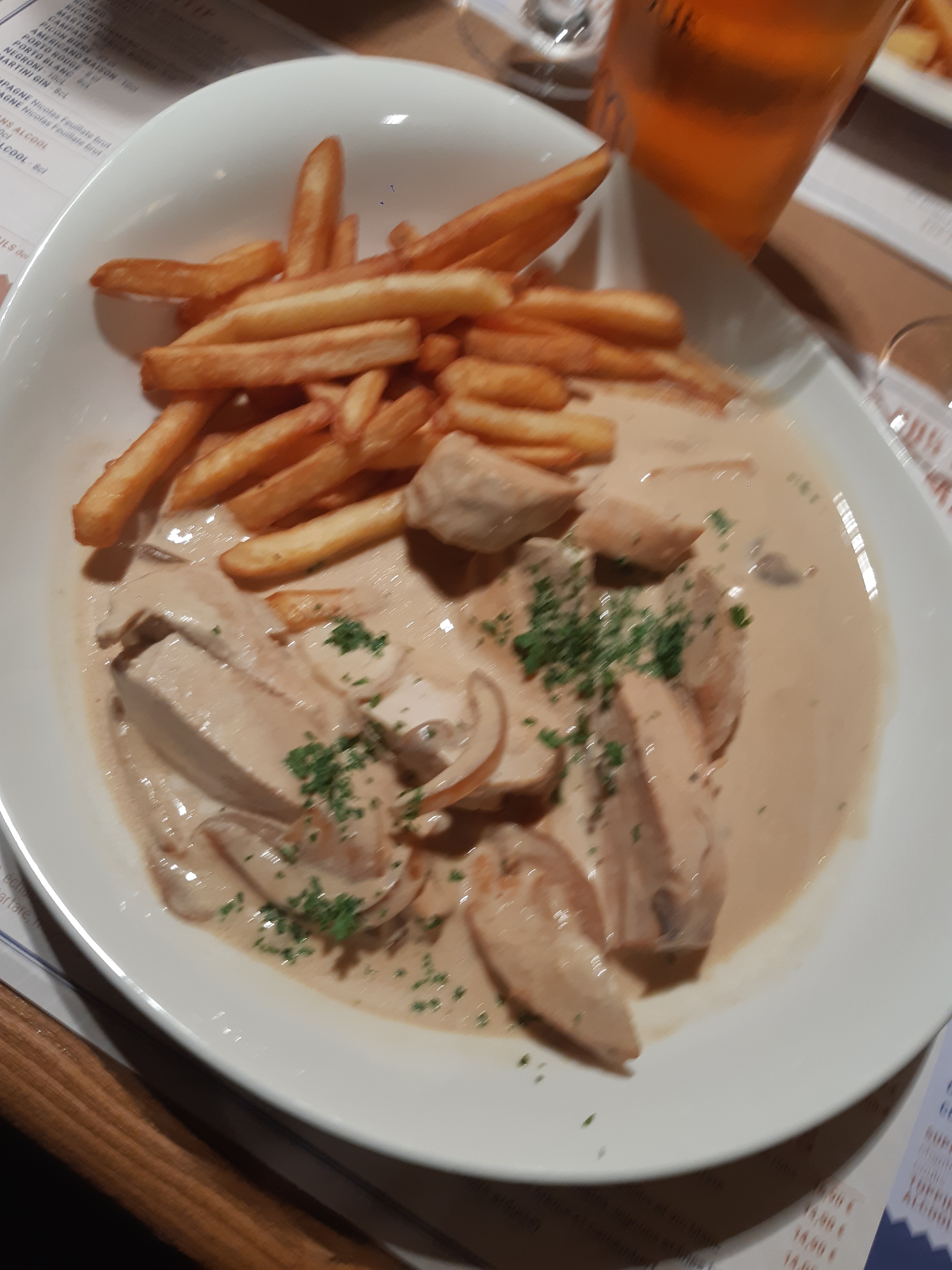 Accueil correct, serveuse souriante, nous avons pris un apéritif et le plat est arrivé quasiment en même temps donc nous avons mangé froid ! De plus pour le repas j'ai commandé une bière si je ne la réclame pas je ne l'ai pas ! Pareil pour avoir un peu de pain, de plus frites congelées de basse qualité bref nous n'y retournerons pas !!.