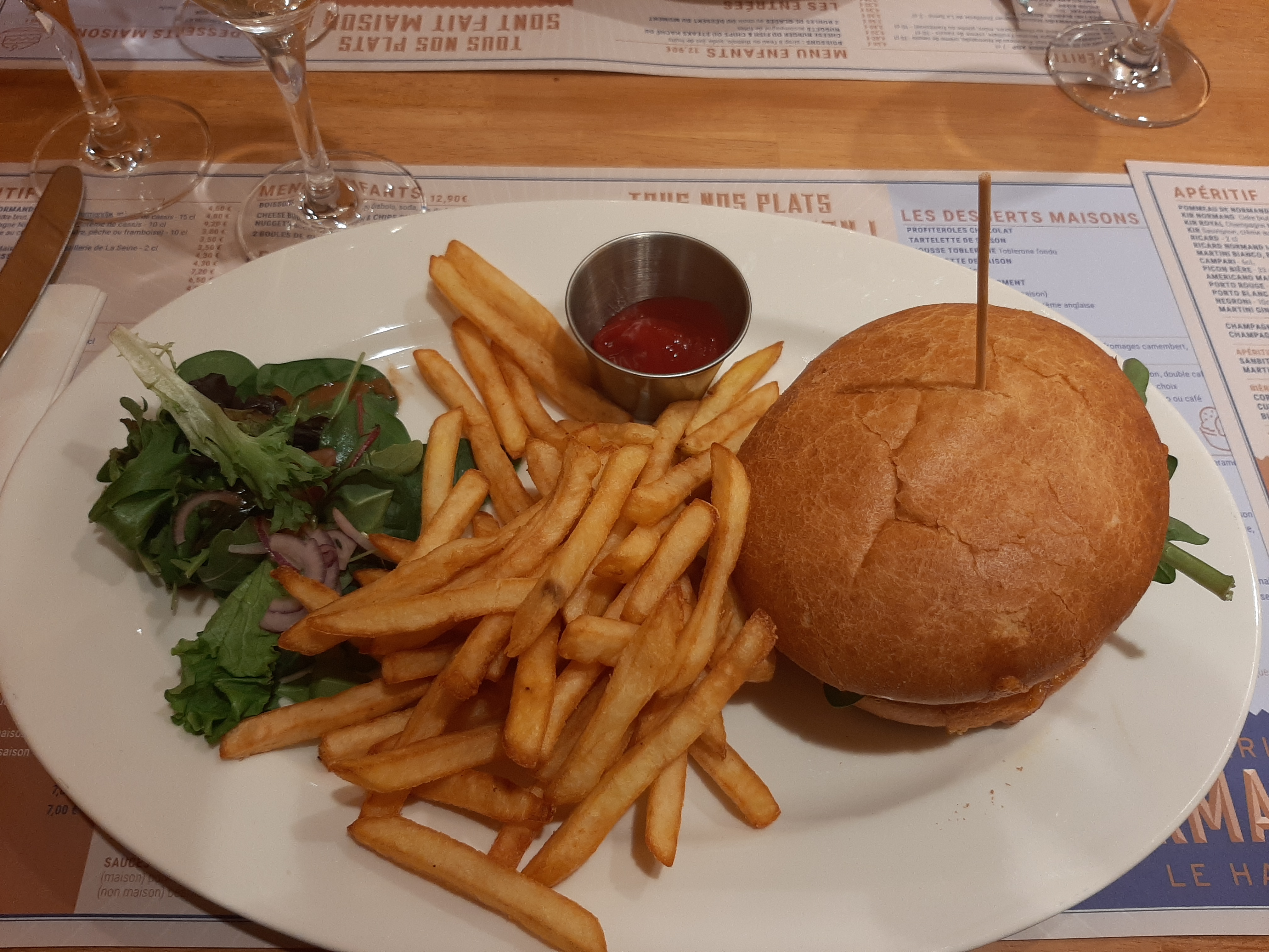 Commençons par le point positif : un beau cadre que ce soit à l'intérieur ou en terrasse. Concernant la restauration, ne soyez pas pressé l'attente entre les plats est longue. De plus une fois les plats (enfin) arrivés, ils sont froid que ce soit le pain hamburger le fromage ou la viande. sans parler des frites congelées donc pas de fait maison. Pour finir les différents problème de commande ( pas les bonnes boissons, pas les bons plats servis). Un petit geste au moment du paiement mais loin d'être suffisant pour l'expérience vécue.