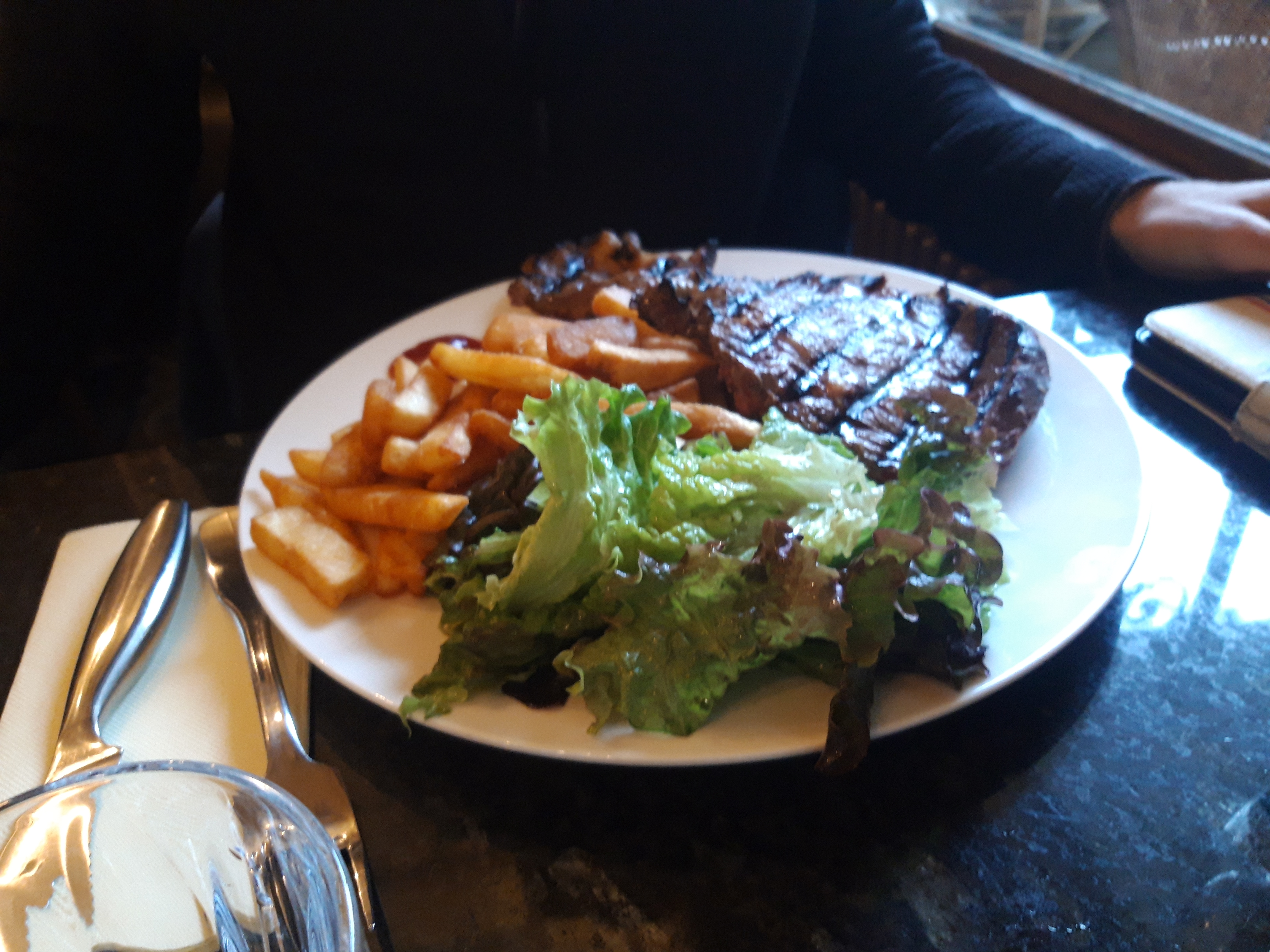 Une entrecôte très tendre d une taille impressionnante.Les prix de la carte sont un peu élevé.