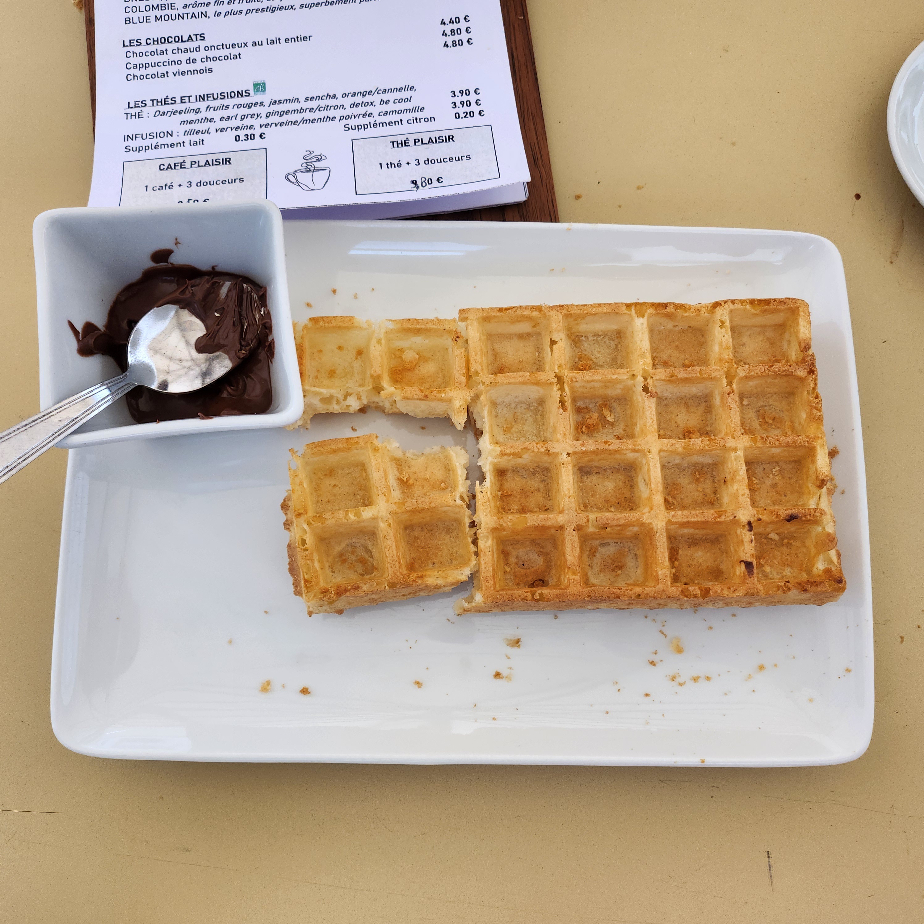 J'ai été déçue du peu de choix a la carte concernant les desserts. J'ai pris une gaufre au chocolat et elle n'était pas savoureuse ni gourmande.. je déconseille ainsi pour un goûter mais simplement pour un café