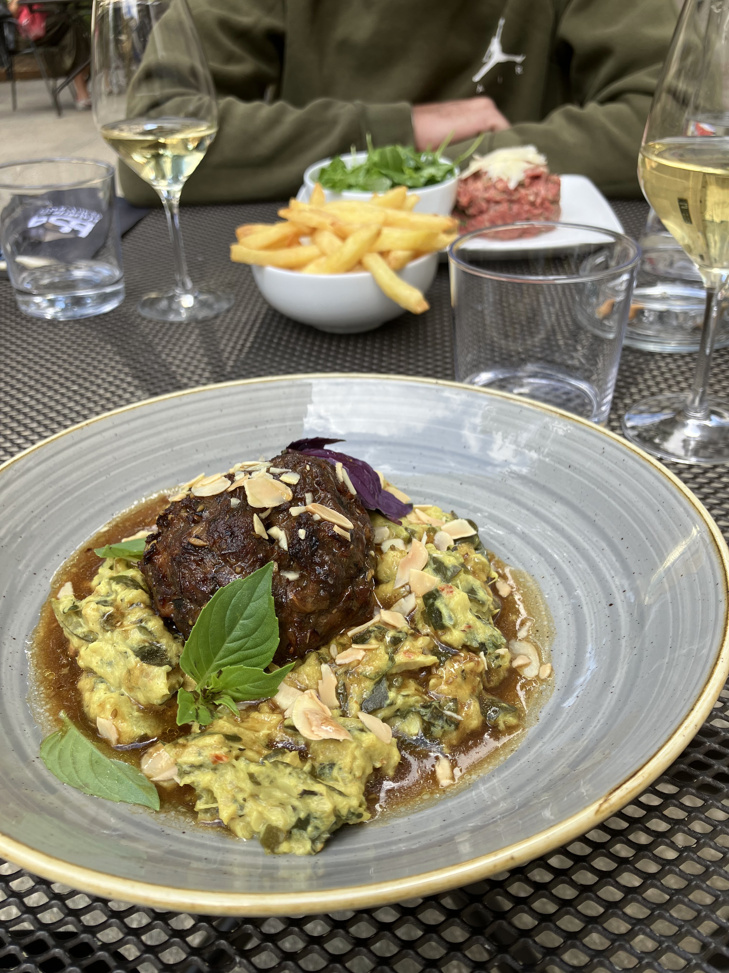Le lieu est vraiment joli, très bien placé, surement l'un des meilleurs emplacements de Dijon, malheureusement la cuisine et le service ne sont pas vraiment à la hauteur. Ok, c'est correct, mais tarifé assez haut (sans doute à cause du lieu du coup), on s'attend vraiment à mieux pour cette gamme de prix. Idéalement : un peu plus de choix sur la carte, plats un peu plus recherchés et service impec.