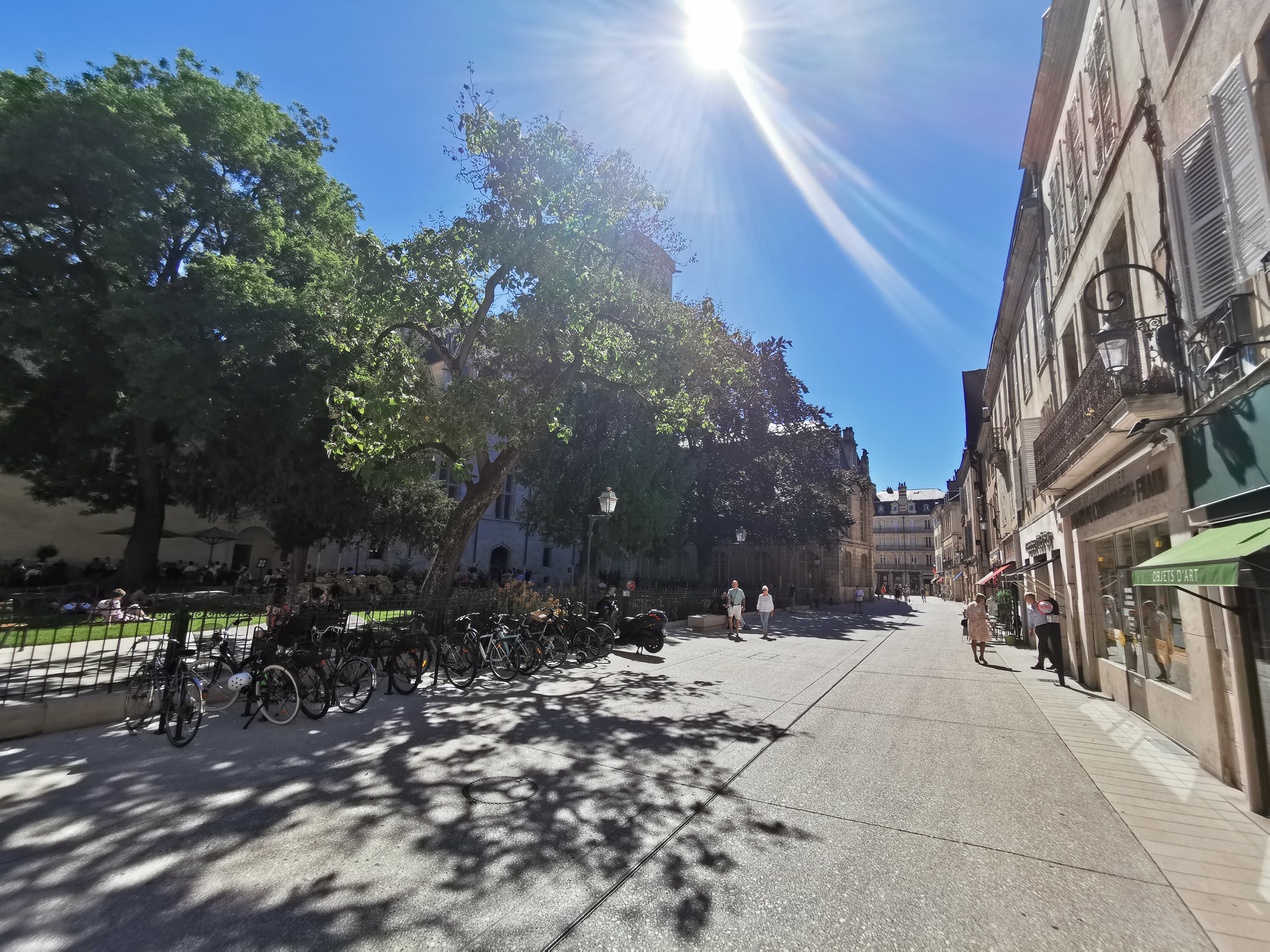 Juste parfait, nous avons déjeuner derrière sur la place/jardin, l’endroit est magnifique et calme La cuisine était délicieuse et le service impeccable. Très belle découverte sur Dijon, bravo