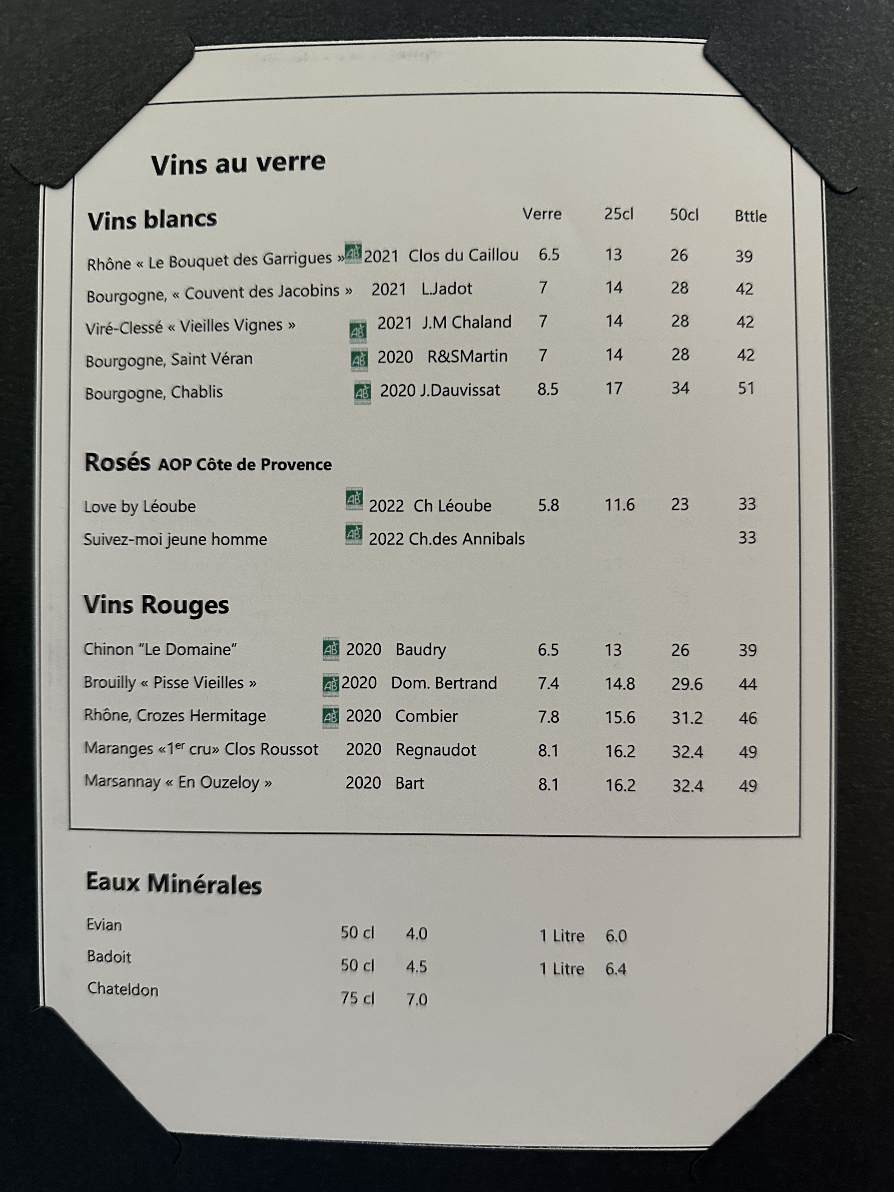 Sachez qu'ici la rondelle de citron vous est facturée a part dans votre Perrier (Il n'y a pas de petit profit). Une pratique parisienne qui s'est visiblement bien diffusée.