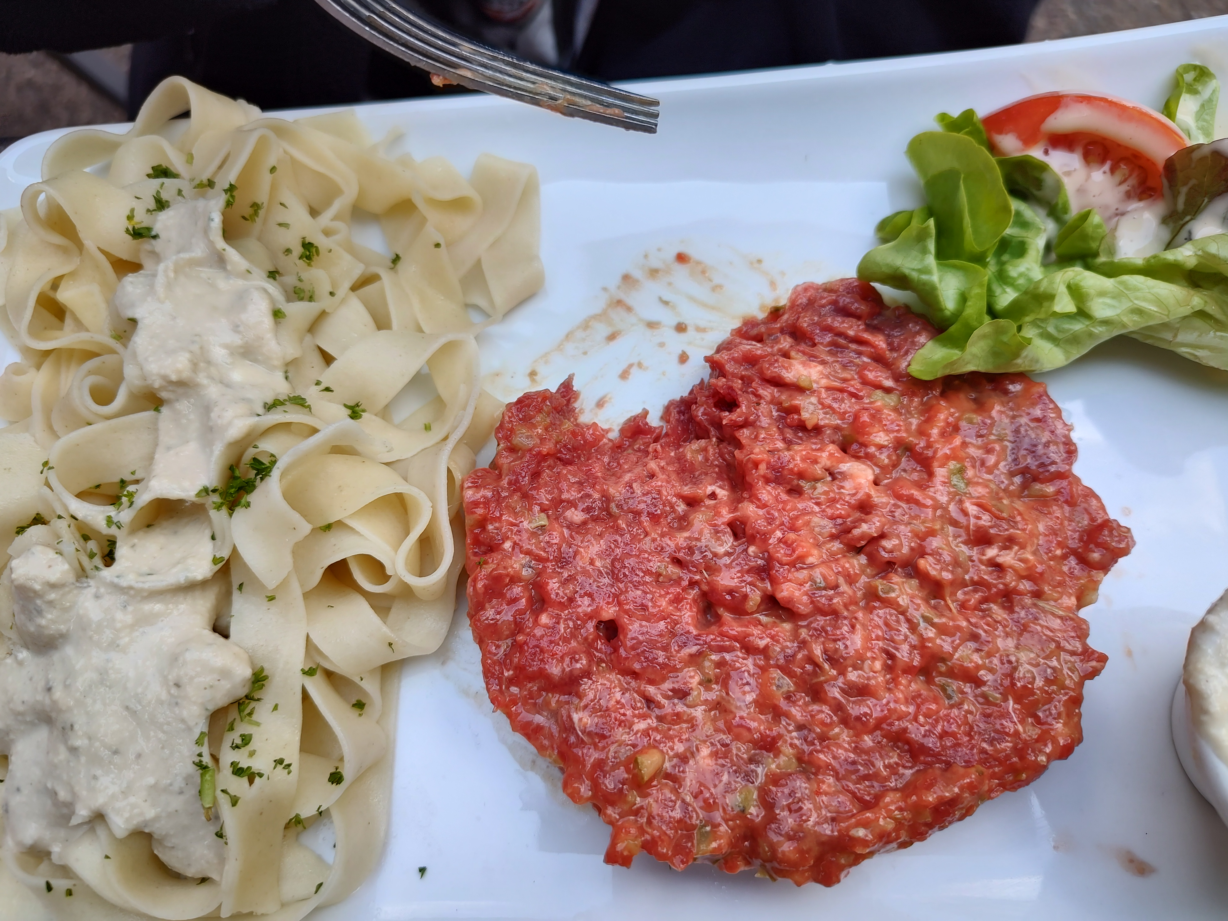 Avant c'était très bon, mais maintenant décevant. Les pâtes baignait dans la crème et la salade n'a pas été bien lavée. Quand il fait beau, un super endroit pour manger dehors. Mais faut mieux juste aller boire un verre.