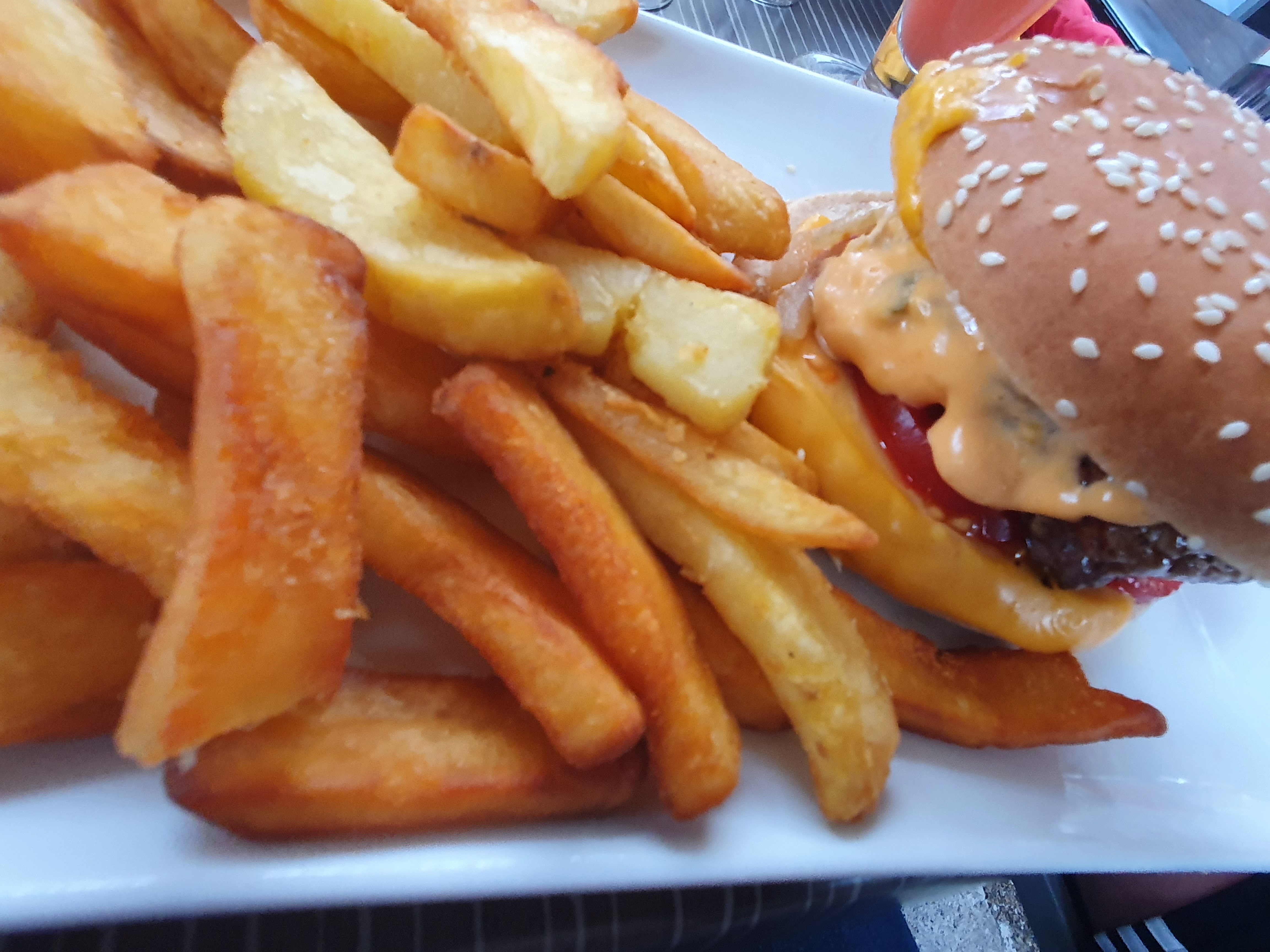 Moment du soir qui aurait pu etre sympa mais beaucoup de table et un peu serrés.Trés bruyant...en plus d'etre collée a mon voisin de derrierr...pas top. Sinon burger bon,frites un peu grasses.