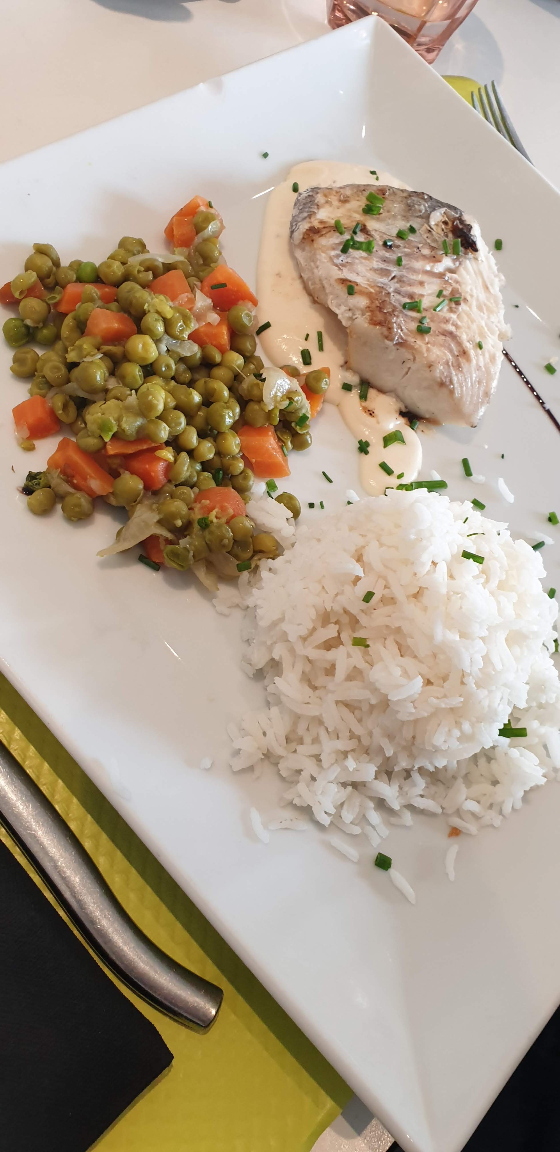 J’ai été satisfaite par l’entrée et le plat ! Rillettes de maquereaux et dorade avec fondue de poireaux, un délice !! Le dessert était l’entremet des îles, un entremet mangue et citron je suis sûre que les personnes qui aiment l’acidulé aimerait ce dessert, dommage qu’on ne sentait pas assez la manque car le citron prenait le dessus ! Ambiance top et service agréable :)