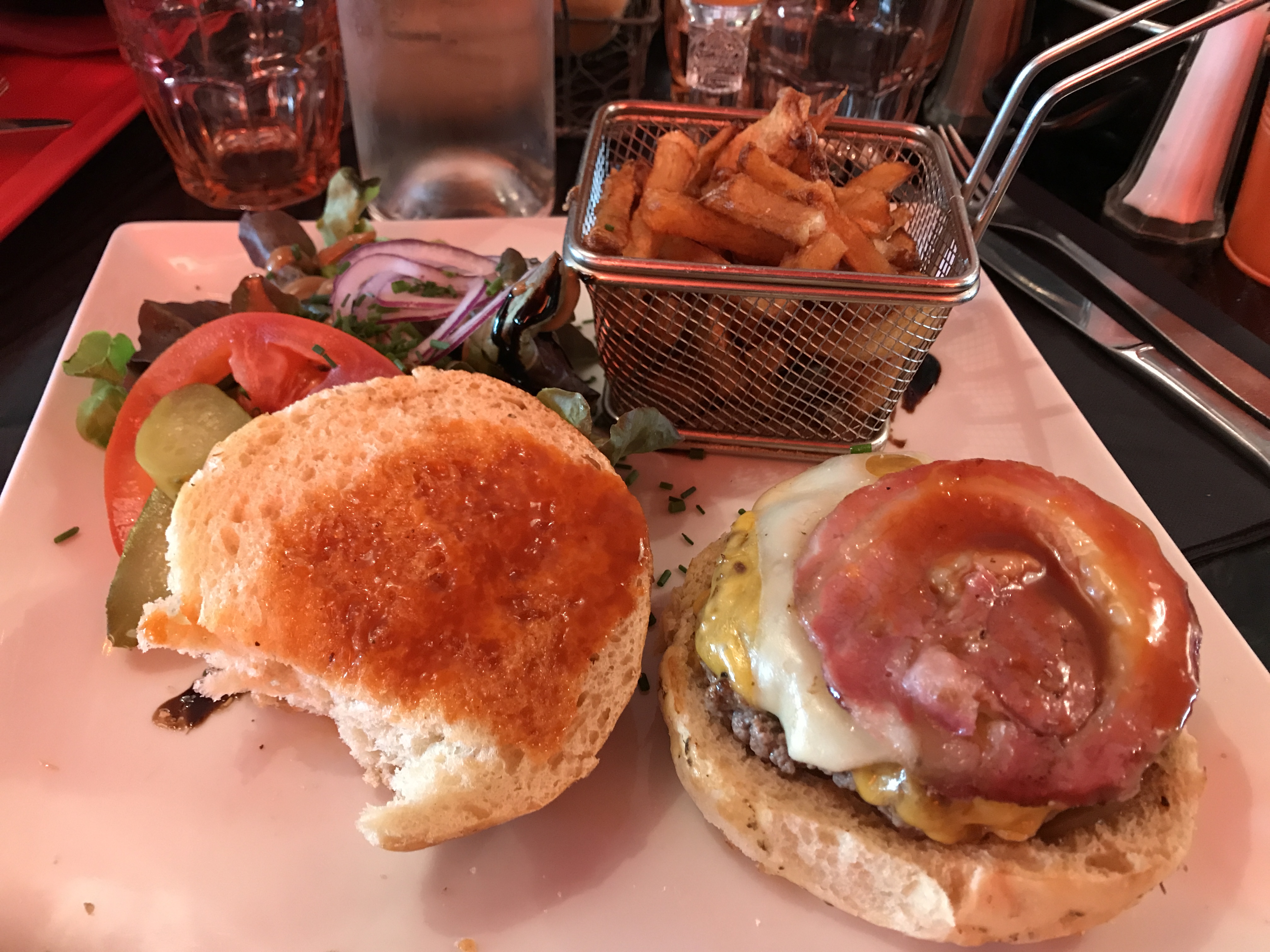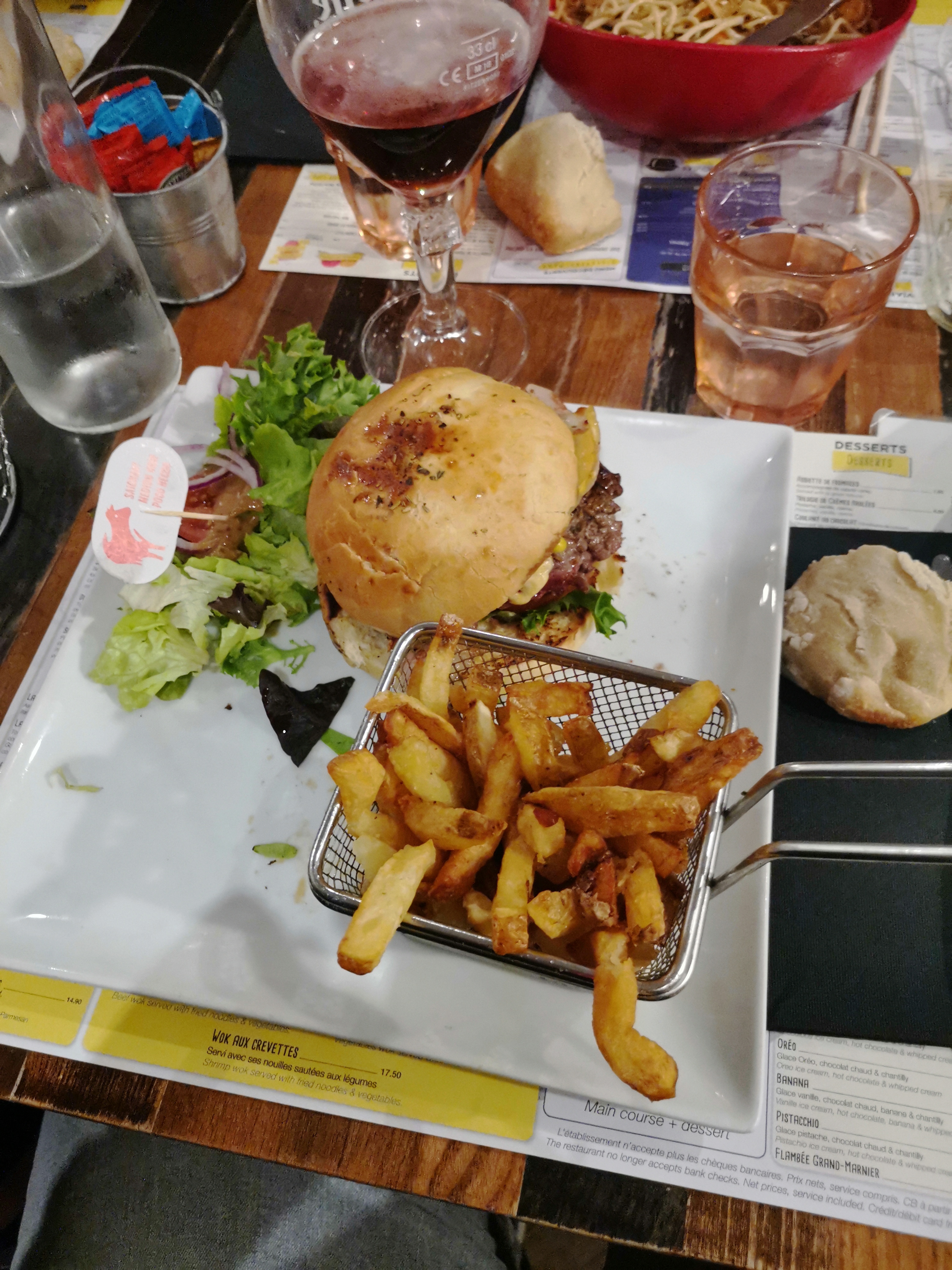 l’une des serveuses plus que désagréable, demande d’un steak hacher nous avons finis avec un pavé. lors de la commande nous avons demander mayo et ketchup on nous a assurer que le restaurant n’en servait pas alors que lors du passage d’un autre serveur celui ci nous dit qu’il y en a. résultat 30 min d’attente pour recevoir des sauces donc un repas froid !