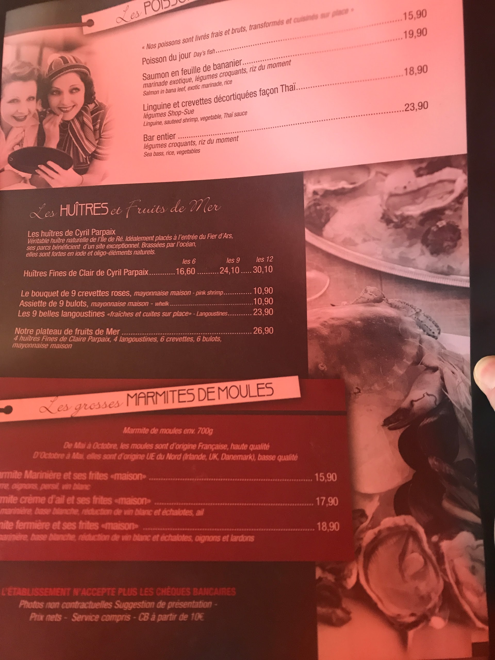 Très déçue emplacement parfait serveur très agréable mais j'ai été déçue de mon plat moule au Roquefort .mes moules étaient minuscules rien a manger pratiquement. moule trop cuites ainsi que les frites et plat froid