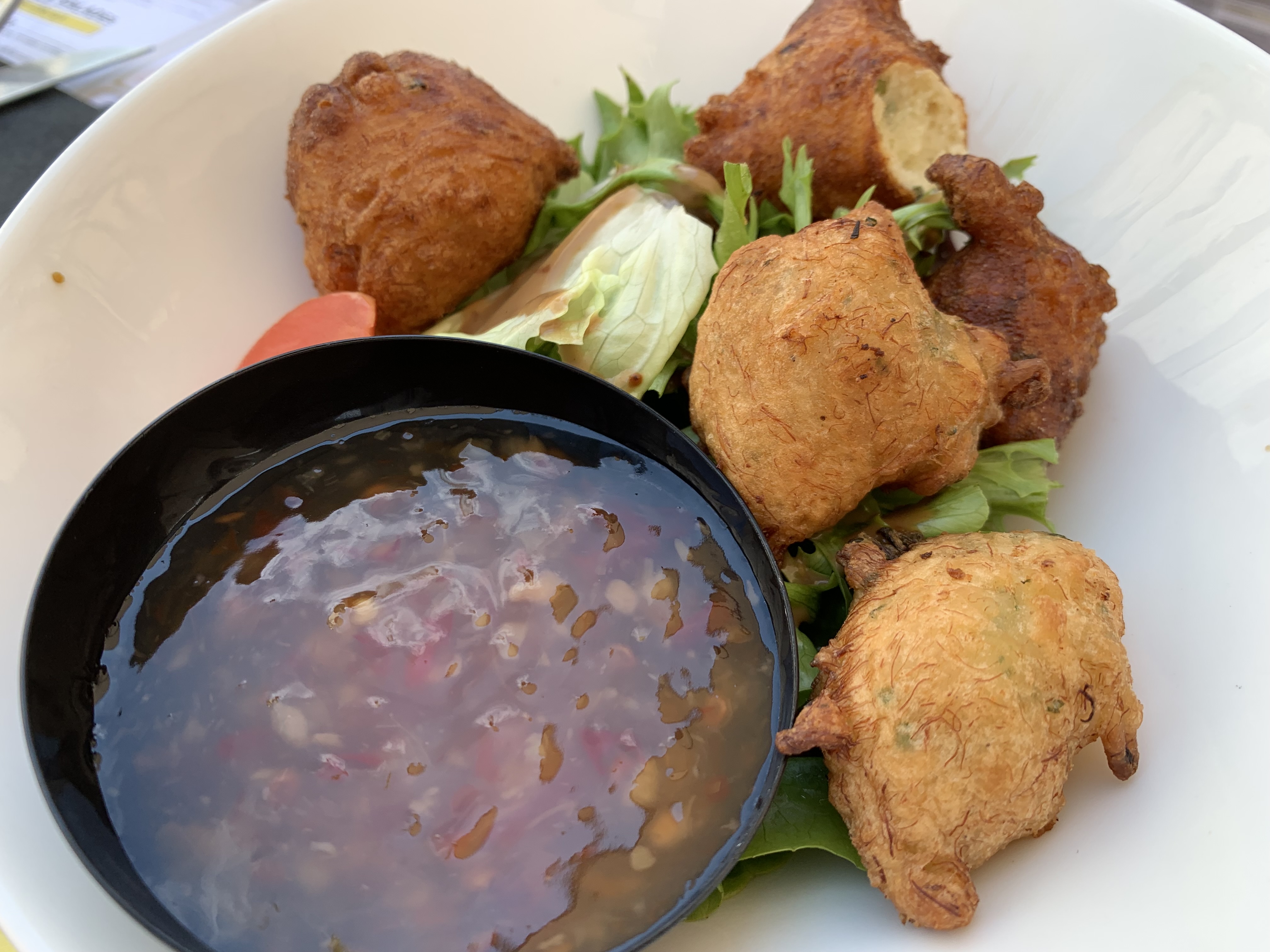 Le service est correct. Le menu du jour (accras de cabillaud et filet de sébaste) était assez bien préparé. Le plat principal a été décoré soigneusement. Pourtant, le temps d’attente était malheureusement trop important, ils ont retardé nos boissons jusqu’au moment où les entrées ont été finies, mais je pense que c’est parce qu’il y avait beaucoup de monde ce midi donc compréhensible pour ce retard. Sinon place agréable sur la grande terrasse.