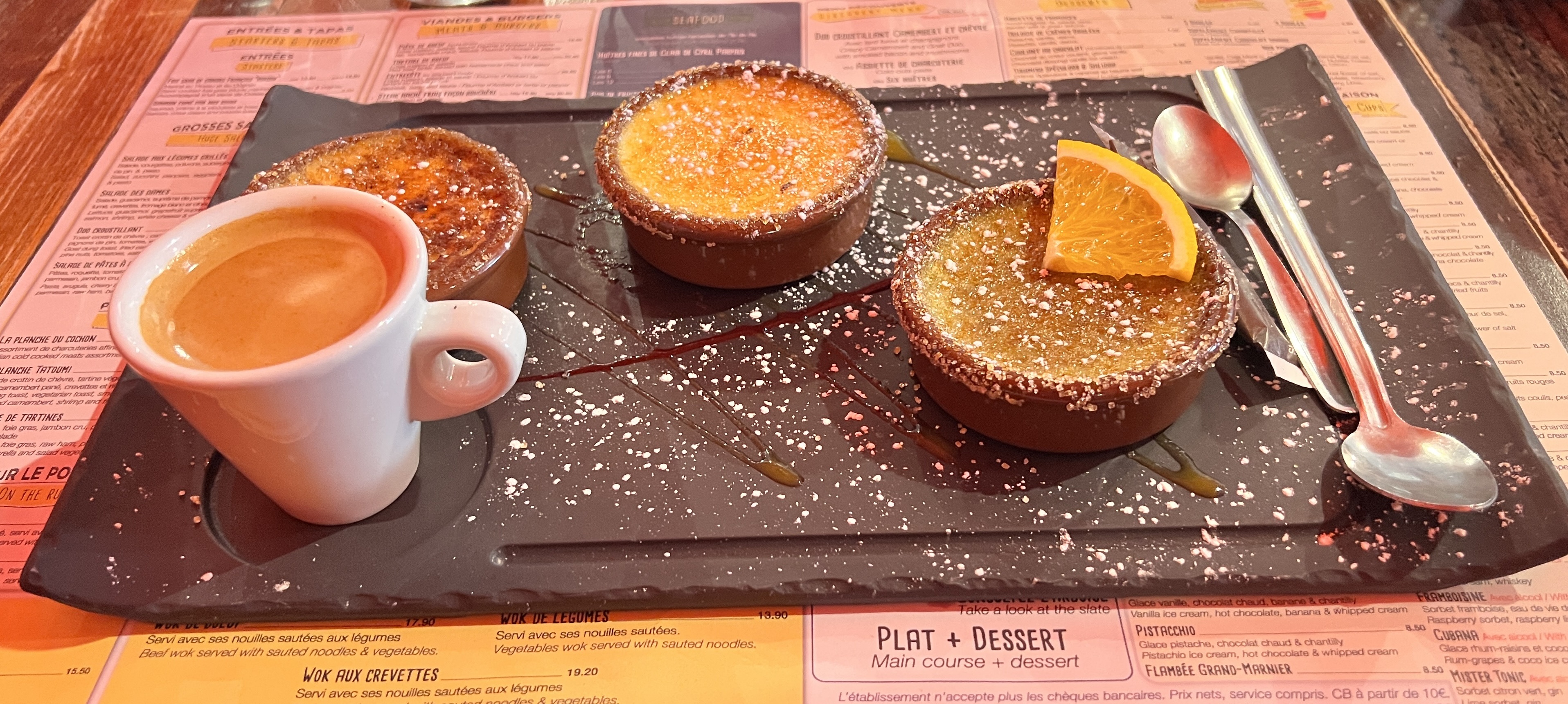 La nourriture, le service, l'emplacement et la décoration étaient tous au rendez-vous ! Superbe carte avec un choix varié de plats et de boissons, chacun y trouvera son bonheur à manger et à boire ! Pour la gourmandise j'ai choisi le café gourmand... oooh la laaaa... fabuleux ! Juste superbe !