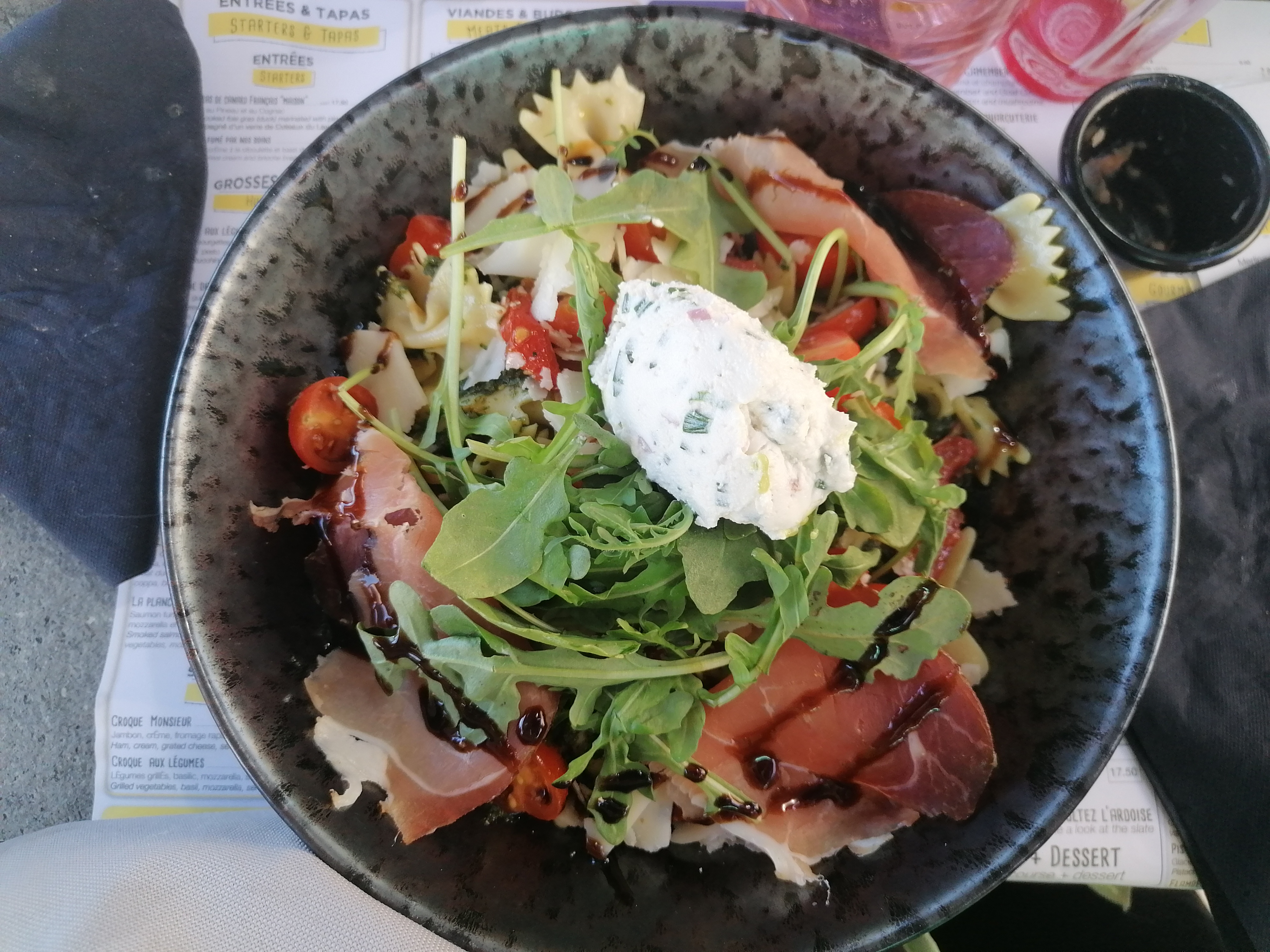 L'emplacement et le patio sont parfaits pour regarder les gens. Le croque végétarien était très bon et la salade d'accompagnement mélangée avec en prime balsamique. Le thé soleil vert froid était faible.