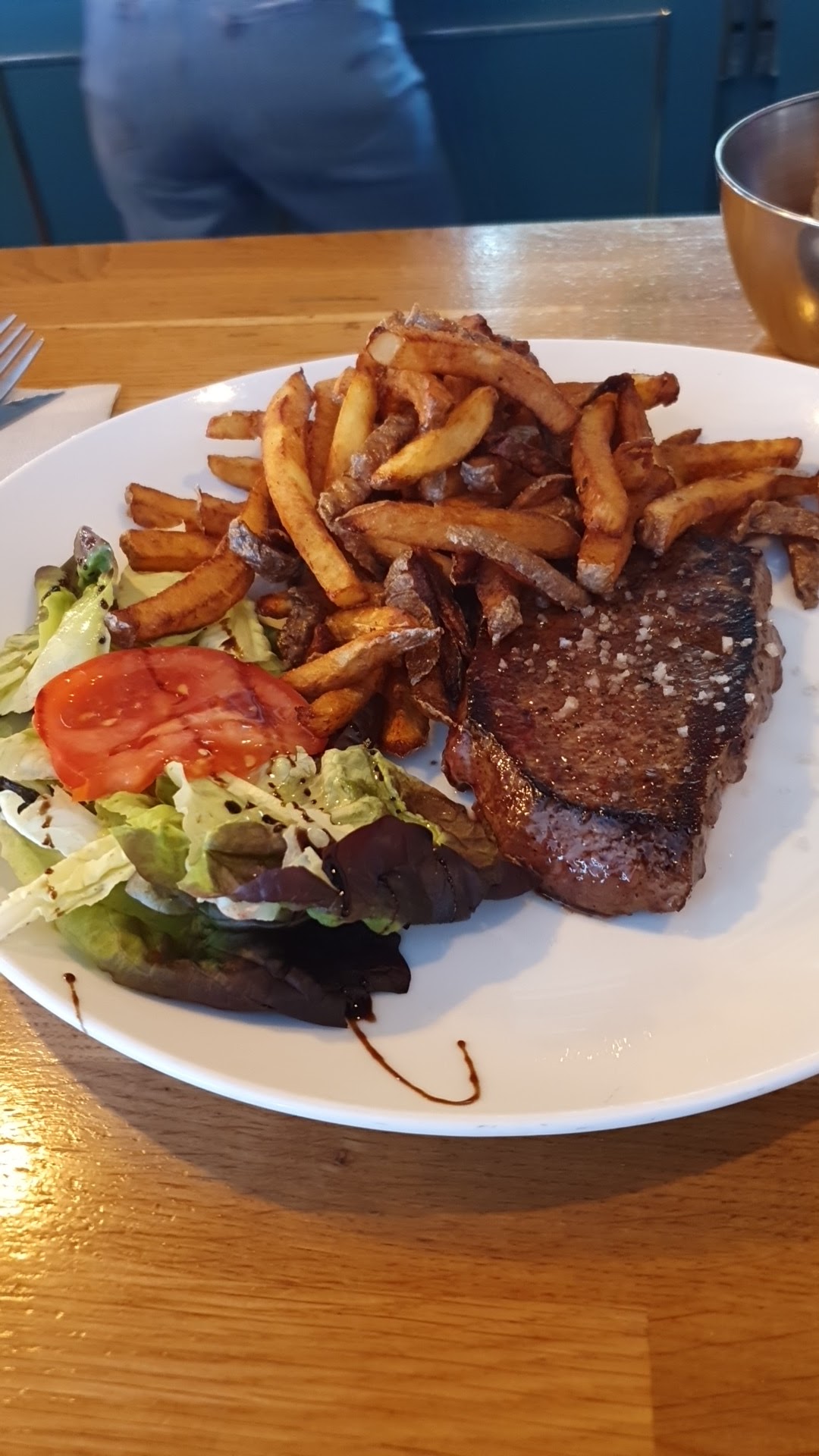 Très bonne petite brasserie, j'ai pris la pièce de boeuf accompagnée de ses frites maison et c'était un régal, on sent les produits de qualité. Le service est très agréable et rapide, l'endroit chaleureux. Les prix sont très bon marché également, je ne peux que recommander ! Mention spéciale à la mousse au chocolat blanc qui était vraiment délicieuse (tellement que je n'ai pas eu le temps de la prendre en photo).
