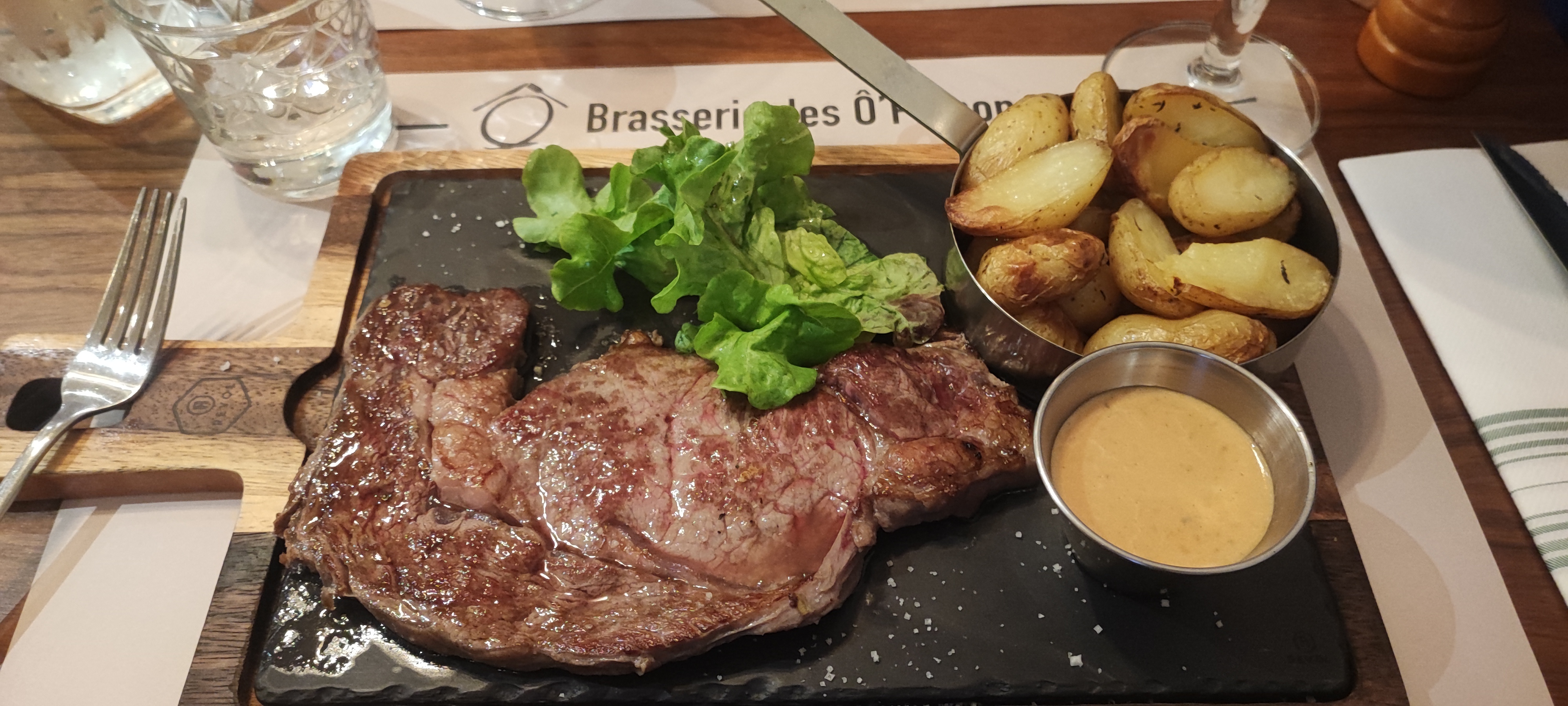 j ai mangé ce jour dans ce resto une entrecôte très dur incapable de me dire l'origine de la viande plus jamais , je voulais des frites elle me dis NON on peut pas mixer les plats j'ai eu droit à des pommes de terres que mon chien ne mangerait pas serveuse pas aimable enfin mauvaise brasserie passer votre chemin c'est un conseil d'ami