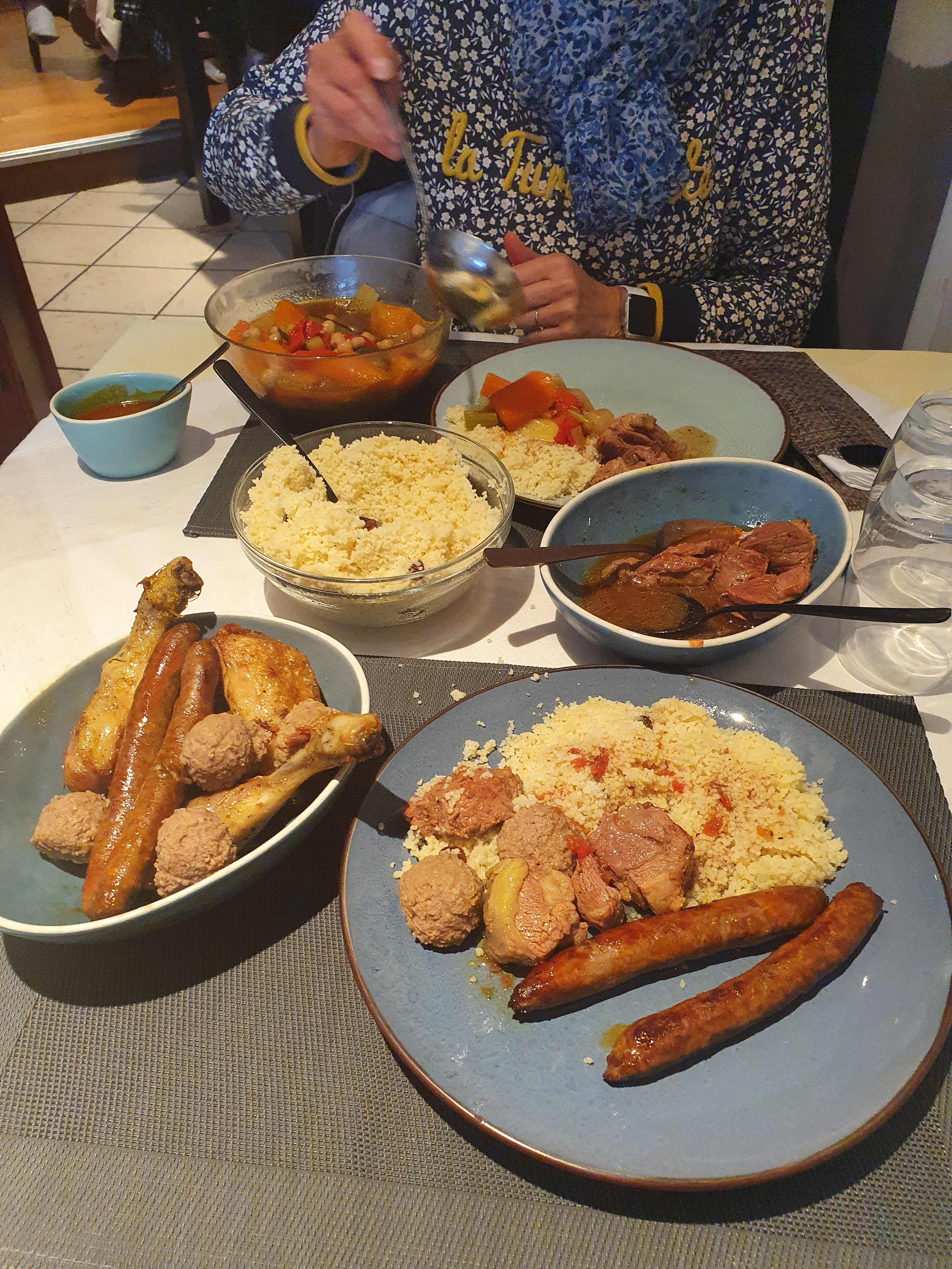 Merci à Guy pour son excellent couscous et à Nadine et serveuses pour l'accueil toujours chaleureux. Dimanche, resto et terrasse pleins (mieux vaut réserver), mais rien à dire pour le service rapide. Couscous royal copieux mais il est très bon