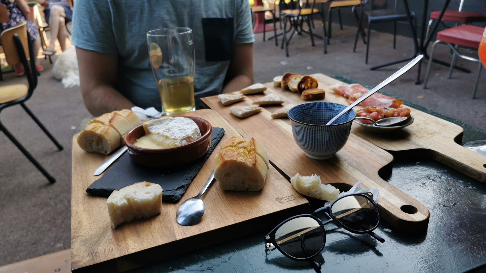 Nous avions réservé pour 9. L’endroit est étouffant. Tables trop rapprochées, aucun ventilateur. Près de 40 degrés au thermomètre. Nous sommes agglutinés à 9 autour de 2 petites tables, nous transpirons, ça coule. Nous commandons. Des boissons et 3 planches type tapas. Les bières artisanales sont excellentes, désaltérantes et le choix est très varié. Par contre l’attente pour les planches est très longue. On ressent que l’équipe est dépassée par le rush. Quasi tout le monde à terminé sa boisson quand les deux premiers apéros arrivent: une petite pizza au chèvre et trois petites tapenades (olive, poivron et pois chiche). Si les produits sont de très bonne qualité, il est vrai, les quantités sont beaucoup trop faibles pour le prix. 6 petites tranches de pain grillées … pour 9. Nous demandons davantage de pain qui mettra 20mn à arriver La deuxième planche (charcuterie et fromage) arrive. Et là au niveau quantité / prix nous n’y sommes pas du tout. Tranches trop fines, trop peu de tranches. Grande inégalité entre les planches des autres tables et la notre. En résumé, un établissement qui vaut le détour pour les bières artisanales excellentes mais qui pourrait œuvrer davantage pour le confort de ses clients, gagner en organisation pour offrir un service plus efficace et proposer des portions bien plus généreuses sur leurs snacks pour avoir un rapport qualité / quantité prix plus juste.