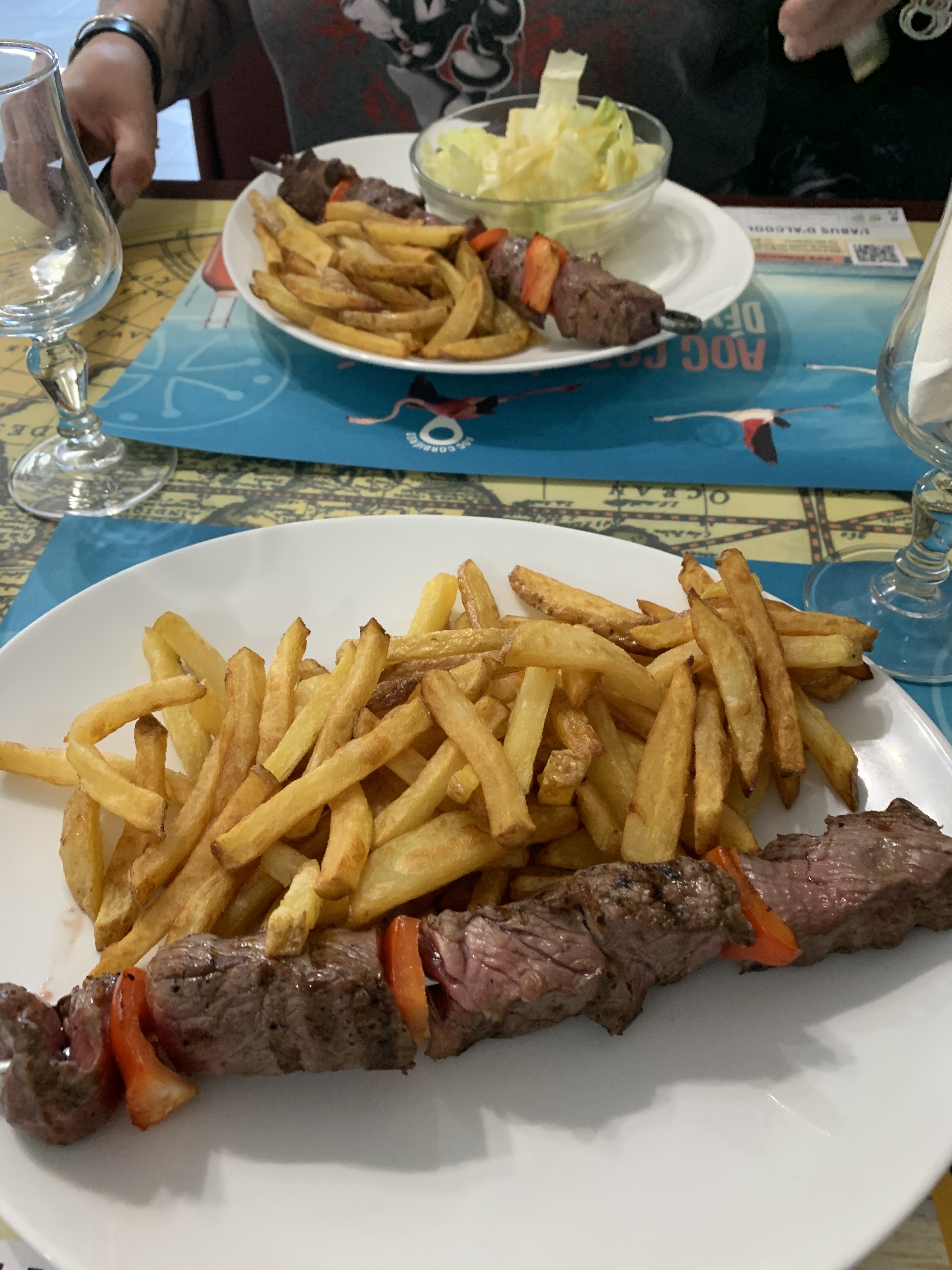 Excellent repas ! Brochette de bœuf cuite au feu de bois, frites maisons. Et pour le dessert, petite salade de fraises 🍓C’était un régal ! Rapport qualité / prix raisonnable. De plus, l’accueil était chaleureux. Je recommande 👌🏻