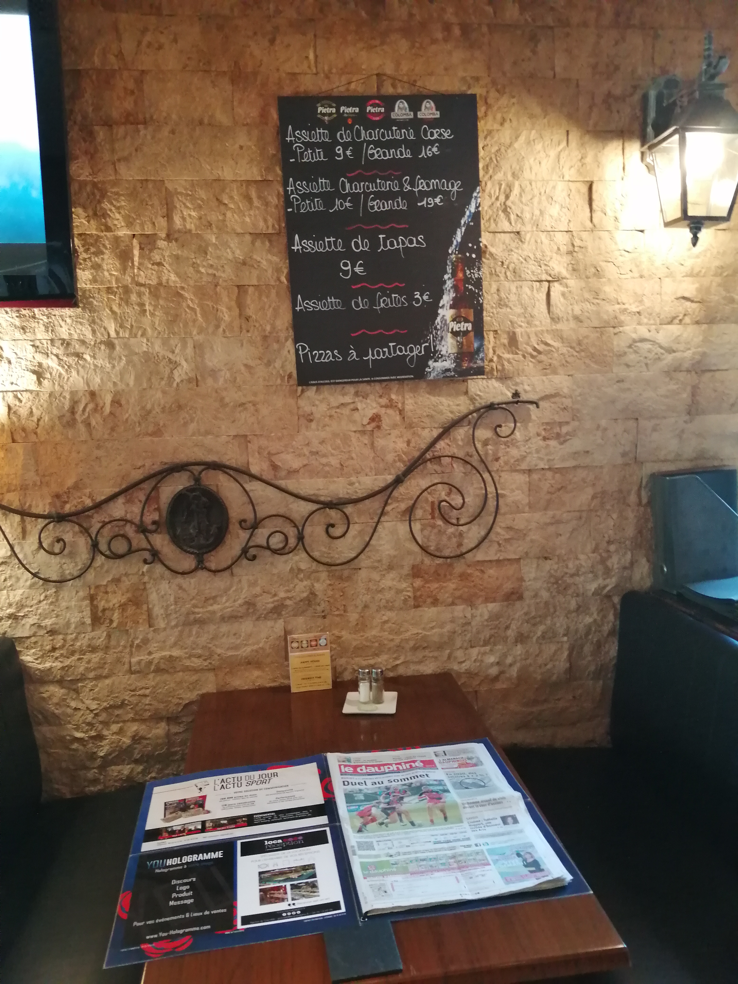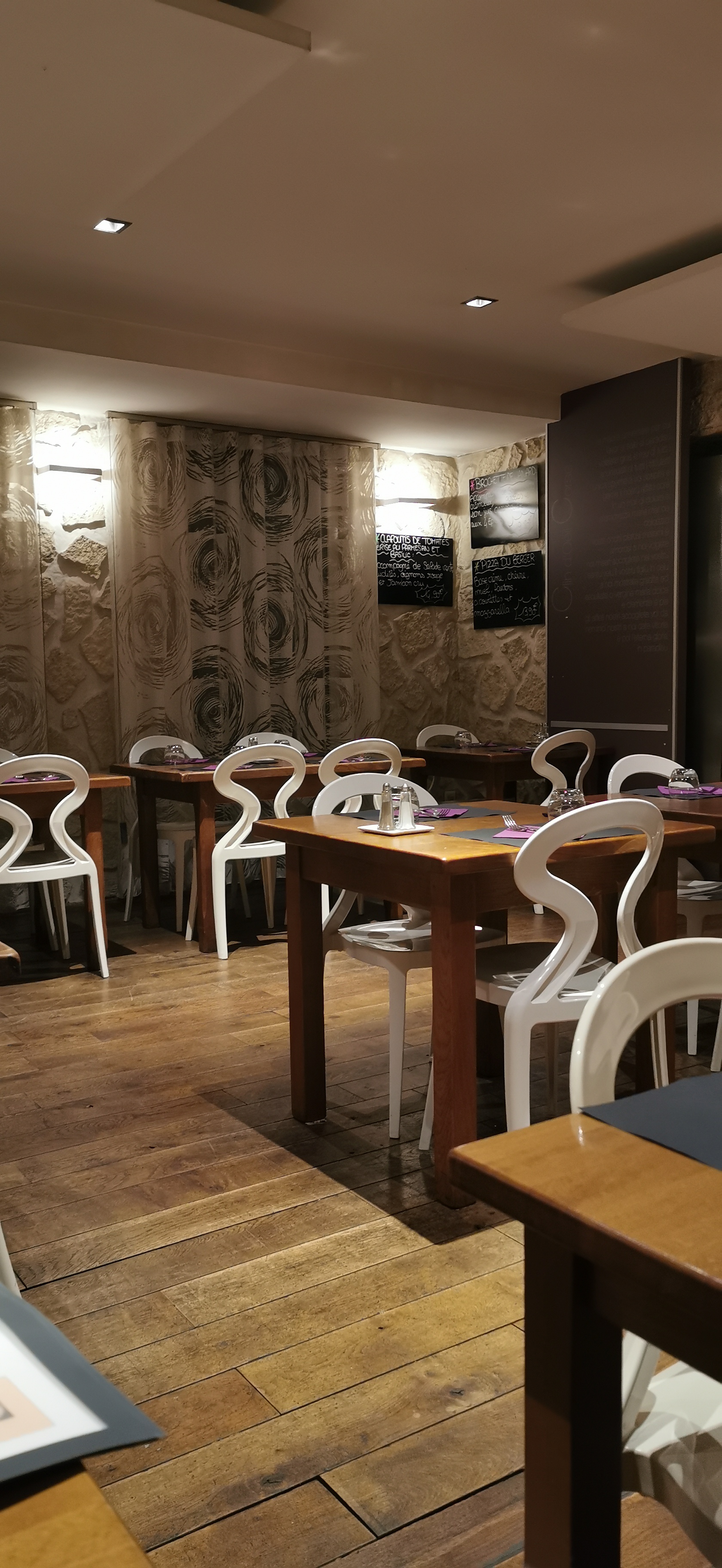 Très joli restaurant où s'entremêlent les pizzas succulentes et les plats du jour savoureux. Très beau cadre, pierres, petites lumières tamisées, idéal pour un restau en amis ou en amoureux. Je recommande vivement.