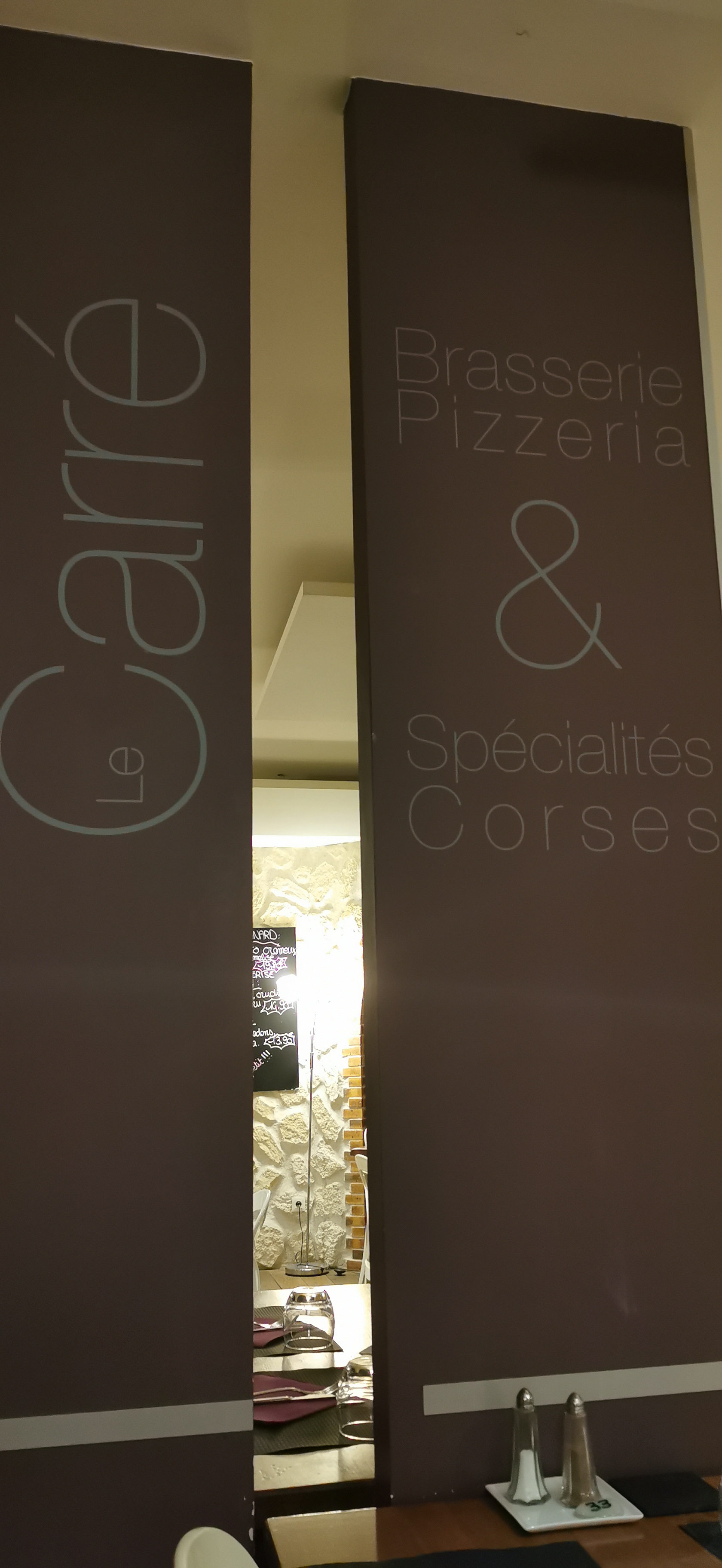 2 salles 2 ambiances. Cadre décontract, cosy et aussi business. On aime le mélange cuisine locale et Corse, le service, la rapidité et la qualité. On aime moins, le bruit mais le Carré c'est brasserie donc on peut pas tout avoir