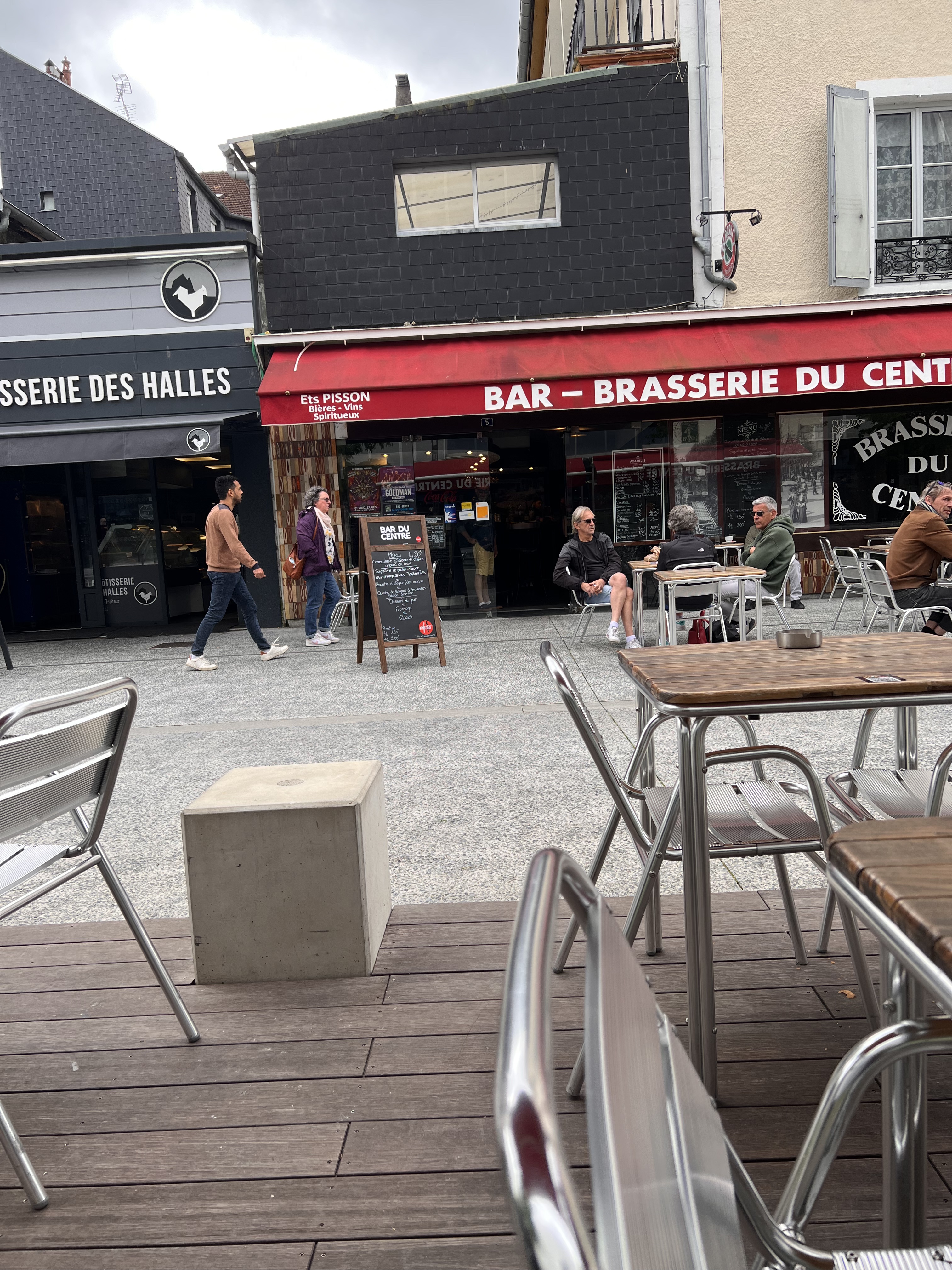 L’enseigne porte bien son nom, situé au centre de la ville, en face des halles, on ne peut mieux faire comme emplacement. Très bon accueil de l’équipe, sérieuse et souriante. Prix de la carte très abordable tel une vraie brasserie. Service rapide. Plat très bon et de qualité. Je ne peux que recommander.